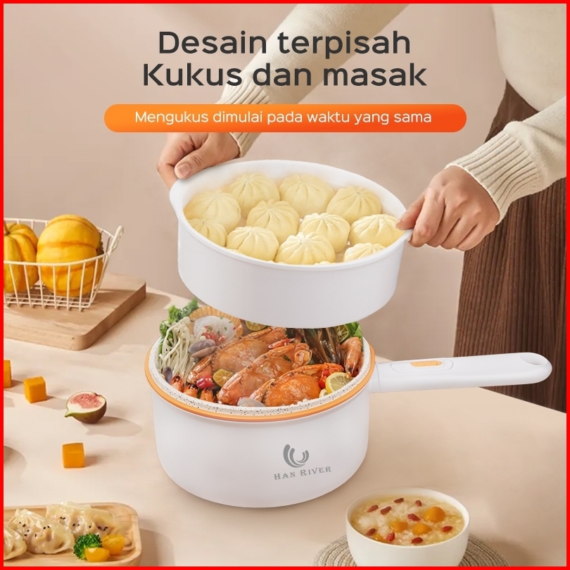 Han River Panci Listrik Gagang List Putih Hrdzg07wt Fry Pan Electric 2l Panci Listrik Multifungsi
