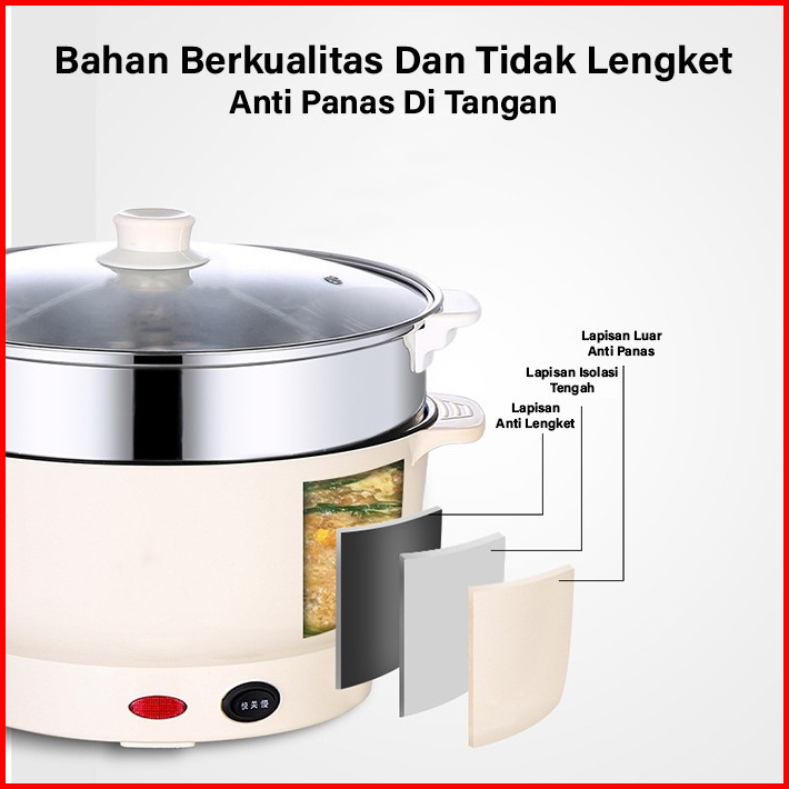 Gm Bear Panci Listrik Serbaguna 2 In 1 1225 - Electric Cooking Pot Free Steamer Stainless