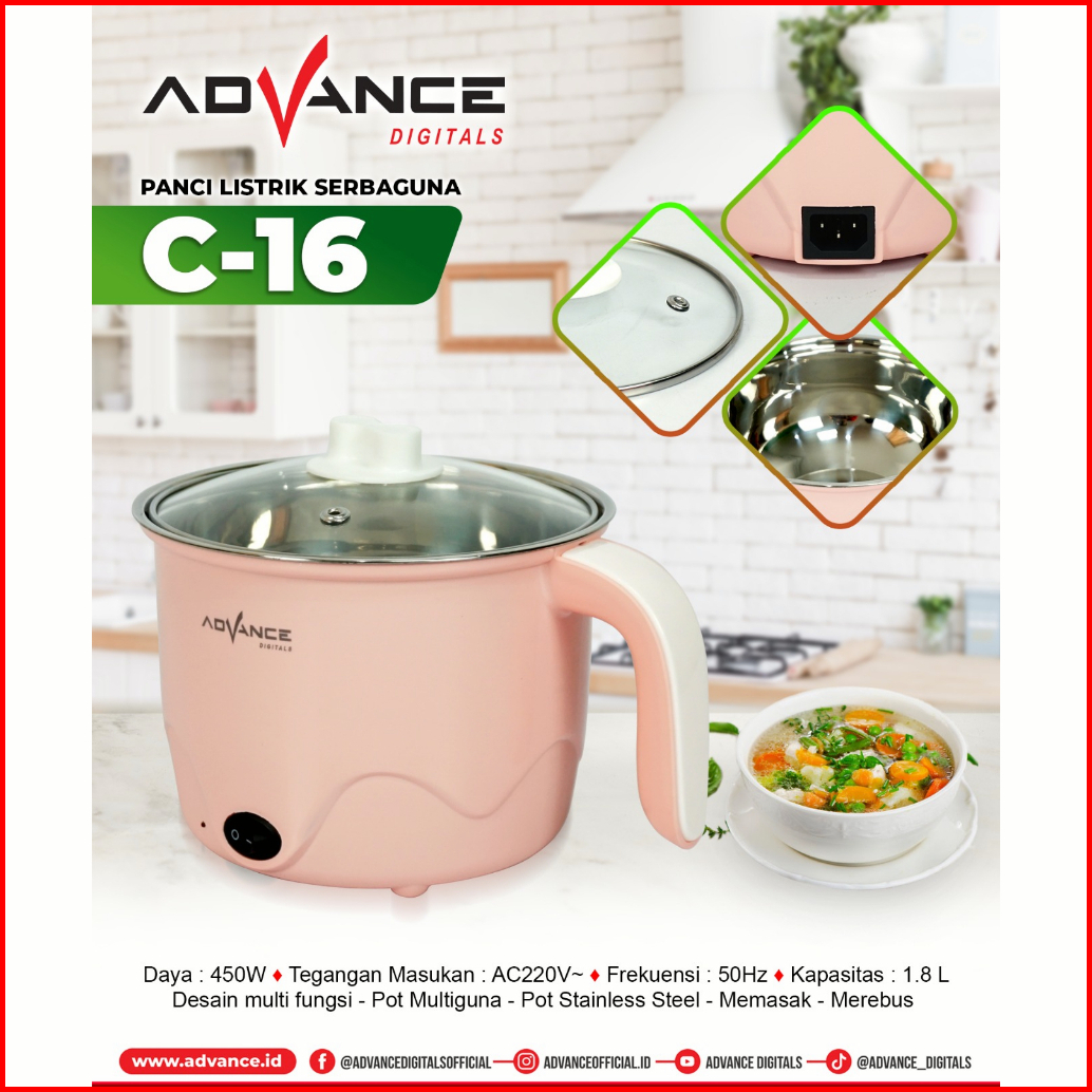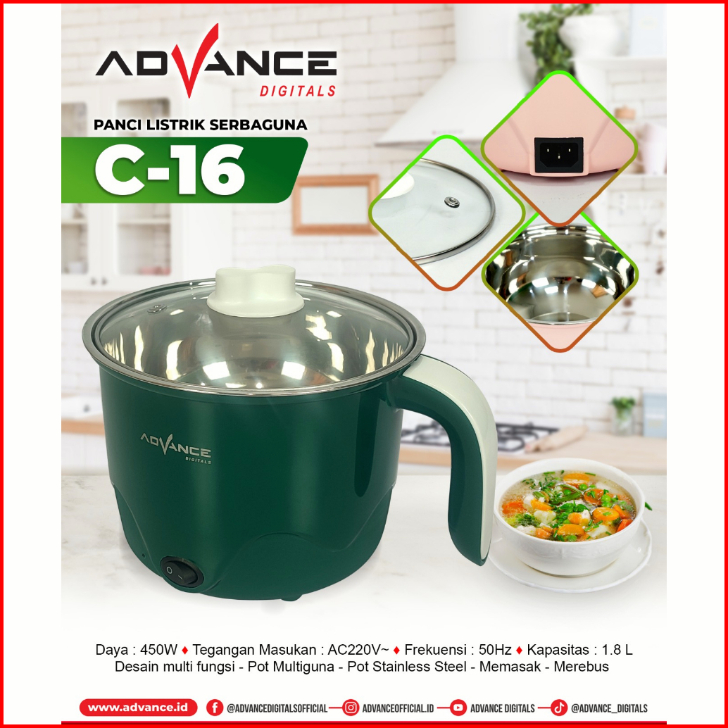 Ready Stock Advance C-16 Panci Listrik Multifungsi 1.5l Panci Kukusan Steamer Jumbo Panci Eletrik