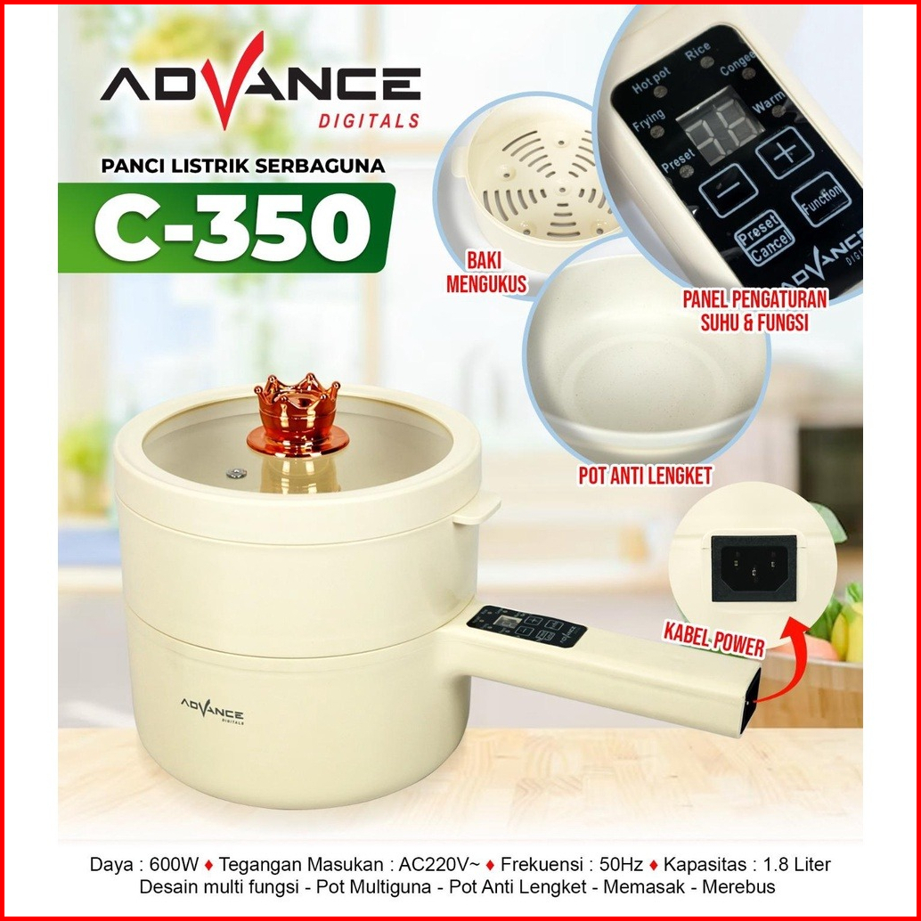 Panci Listrik Advance C-350 Multifungsi 1.8l Panci Elektrik C380 Fry Pan Electric Panci Portable