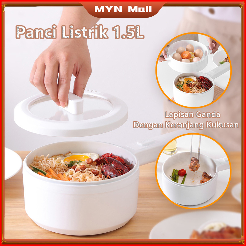 Panci Listrik 1.5l Kompor Listrik Pintar Pelajar Asrama Perjalanan Bisnis Lapisan Ganda Dengan Kukusan - Keramik Serbagu