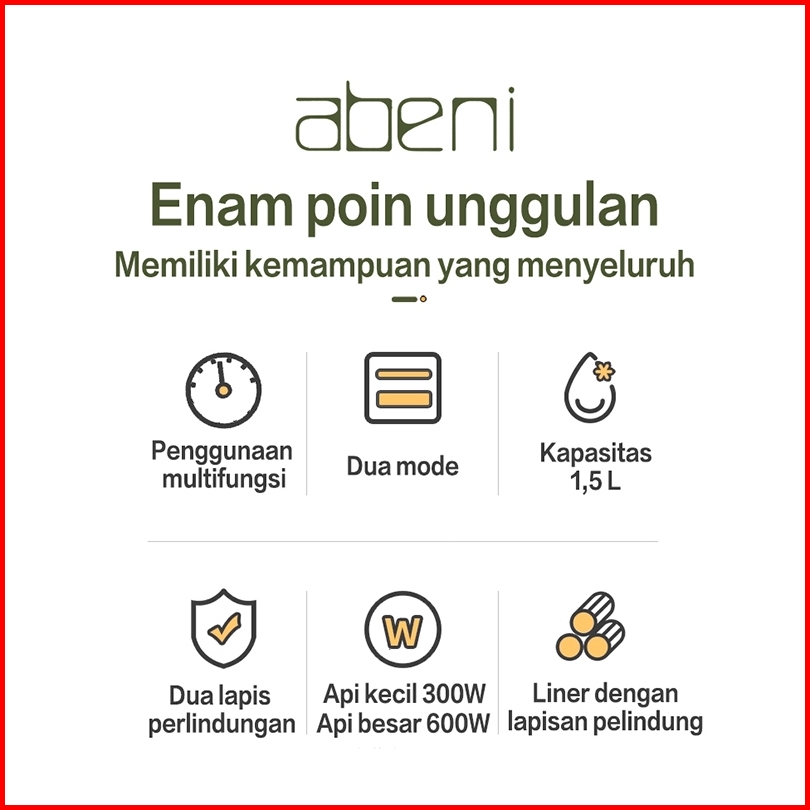Abeni Panci Listrik Multifungsi Lapisan Ganda Anti Lengket - Ideal Untuk Rumah Tangga