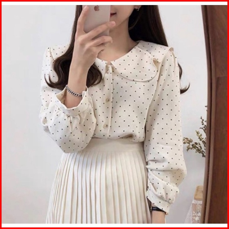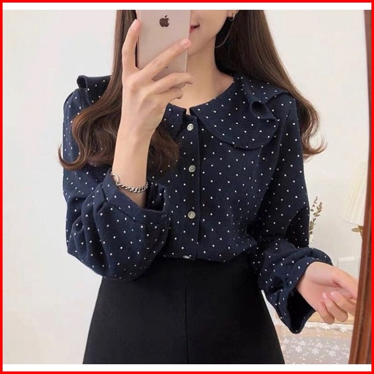 Nindy Blouse Atasan Polkadot Korean Vintage Monalisa Terbaru