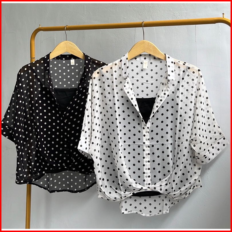 Blouse Sifon Polkadot Free Inner Wanita Blouse 2in1