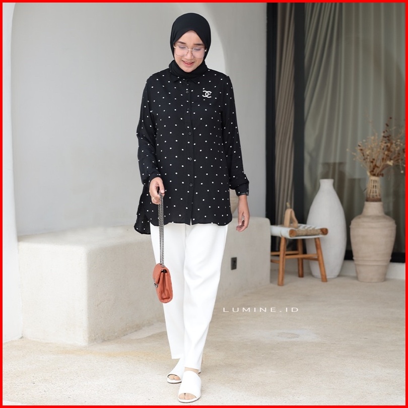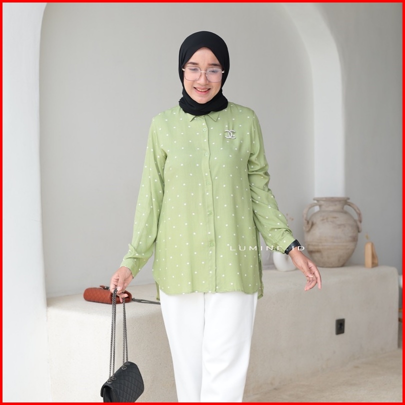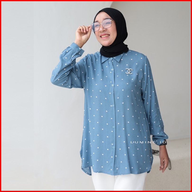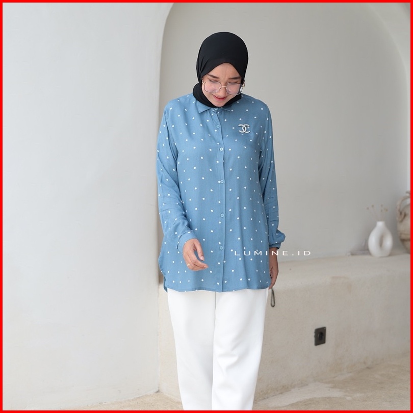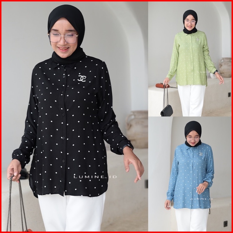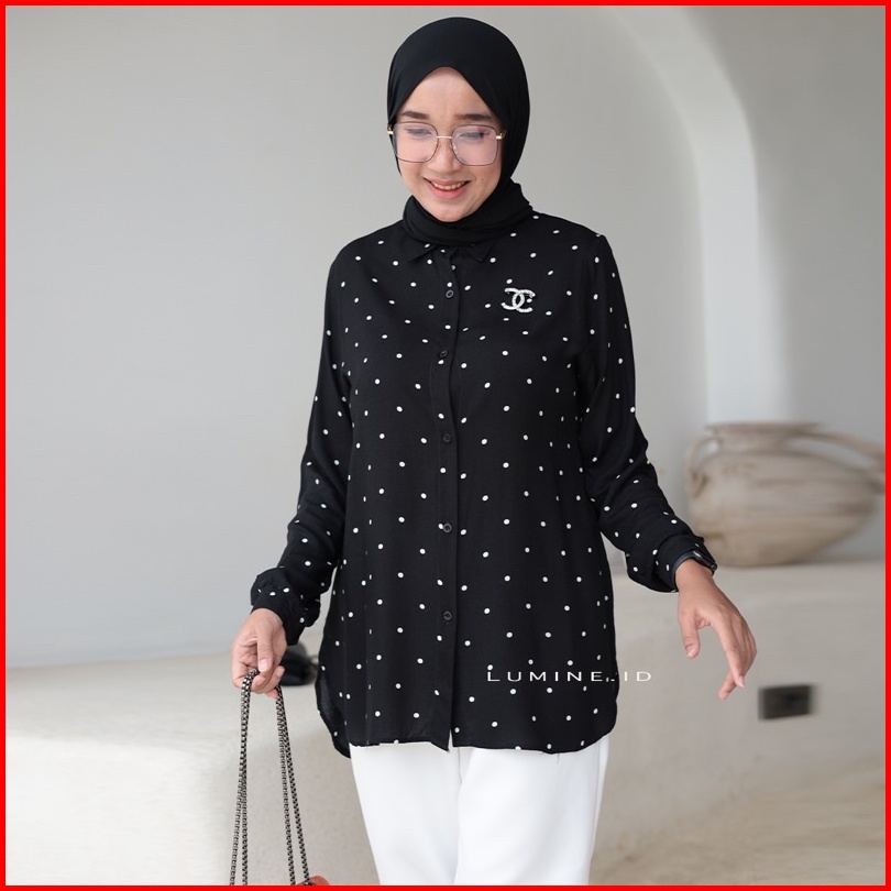 Blouse Kemeja Wanita Polkadot Katun Rayon