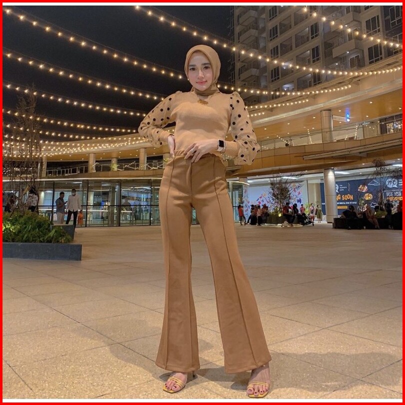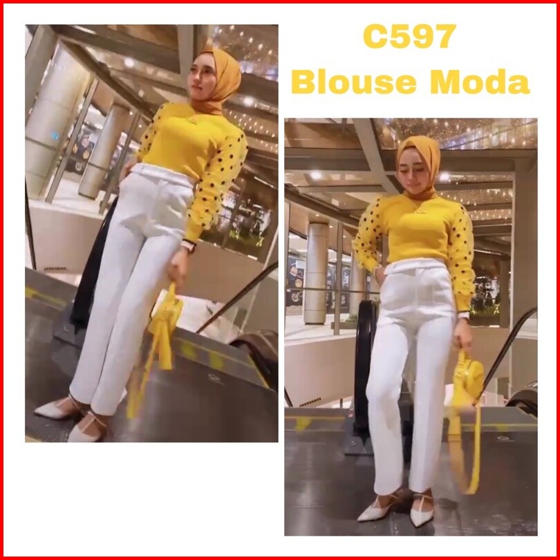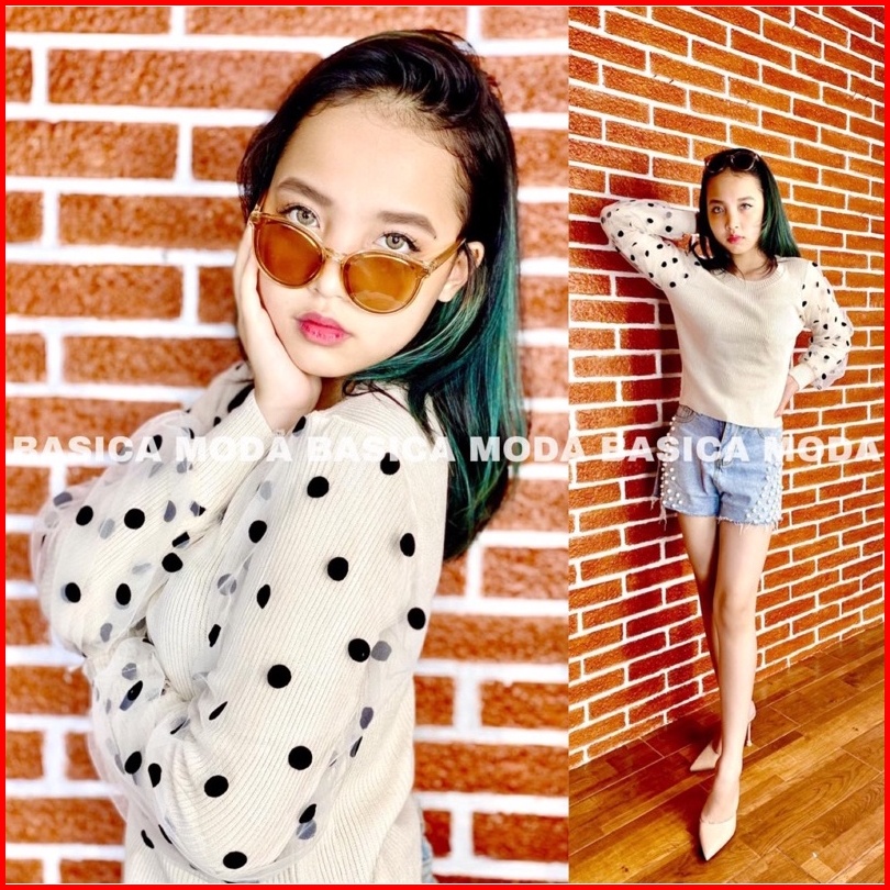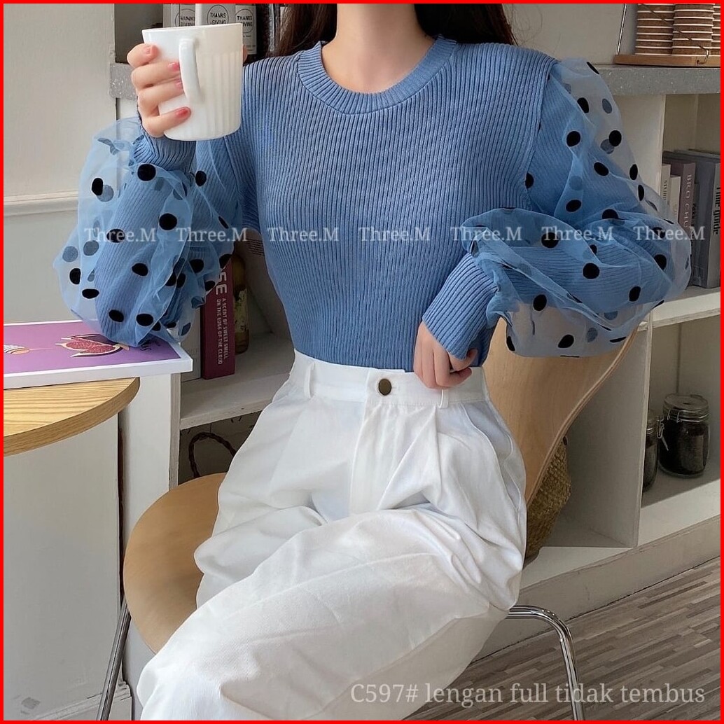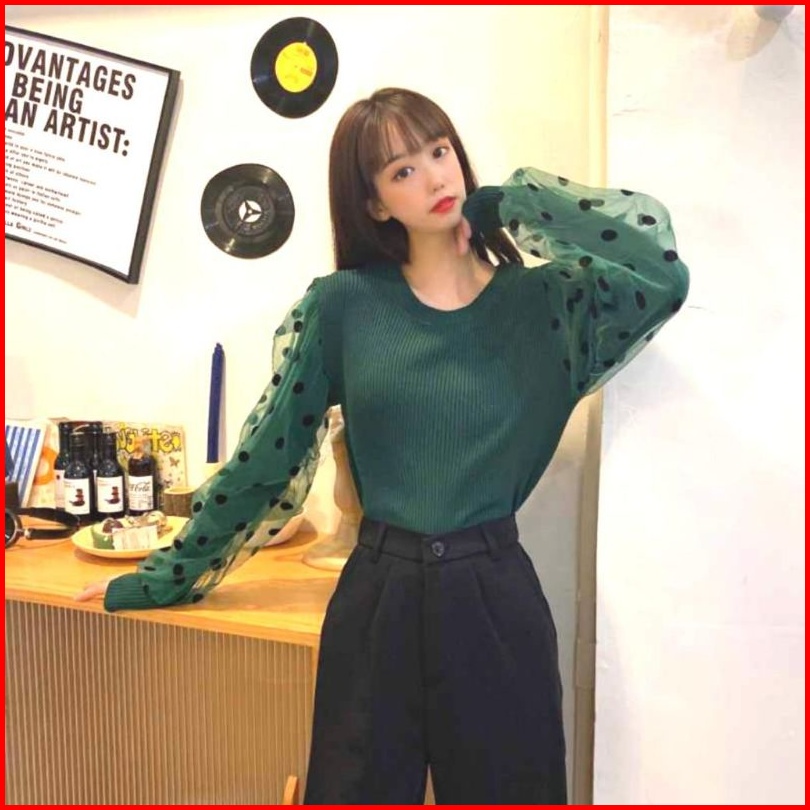 Basica Moda C597 Atasan Top Baju Blouse Wanita Knit Polka Rajut Import