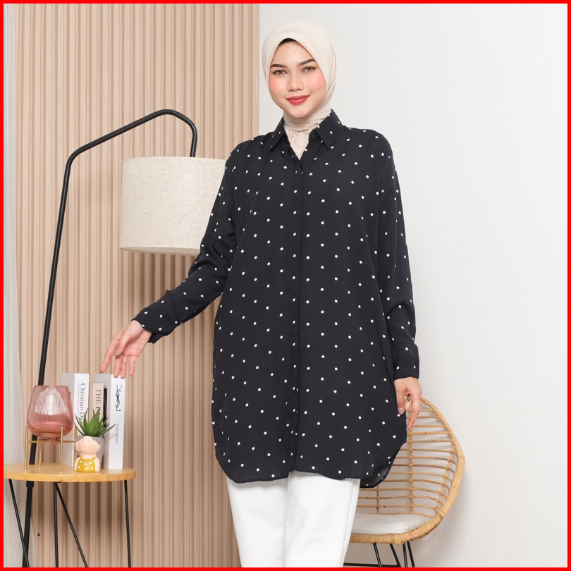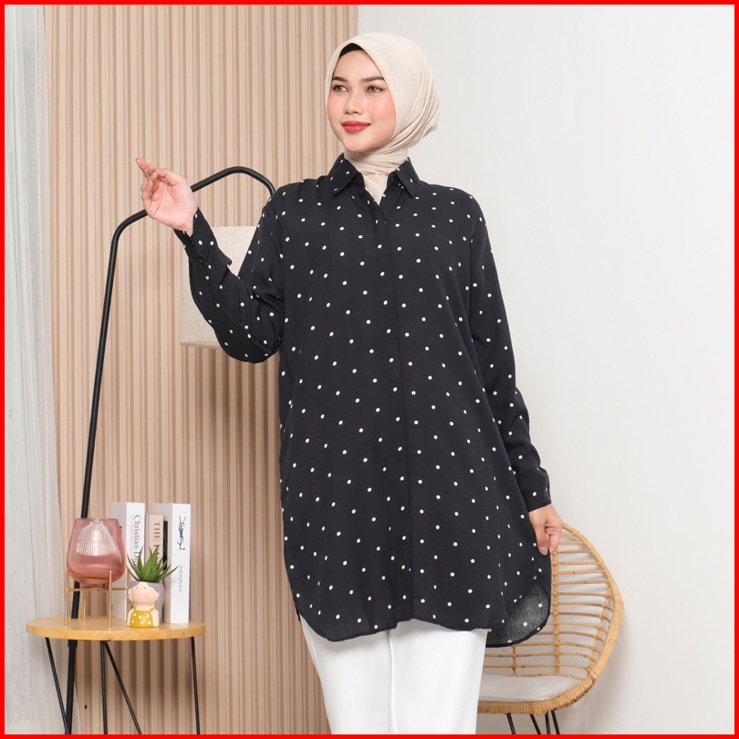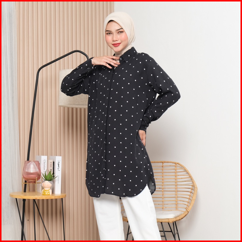 Hasta Delisa Tunik - Tunik Polkadot - Tunik Wanita - Atasan Wanita - Tunik Rayon - Tunik Bahan Adem