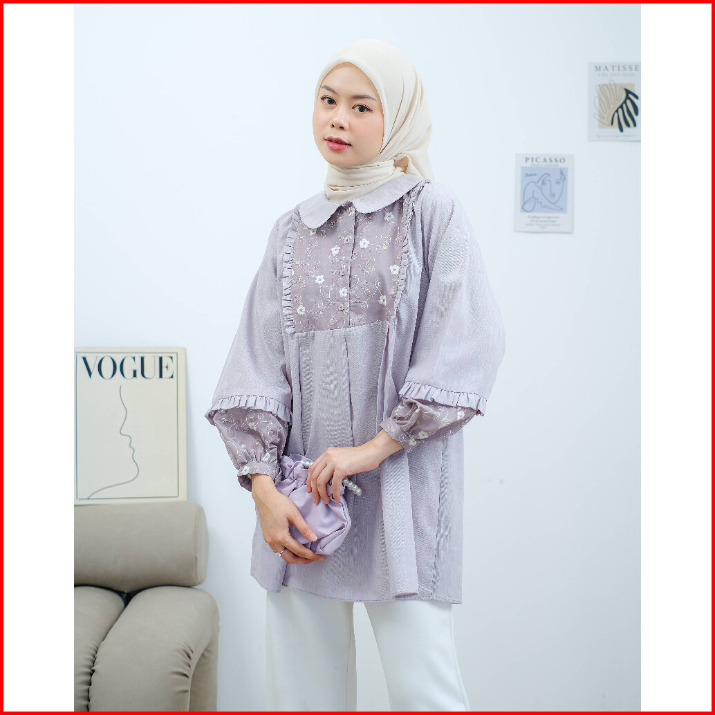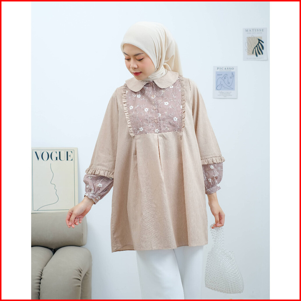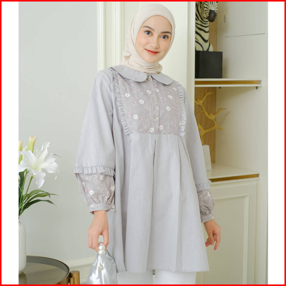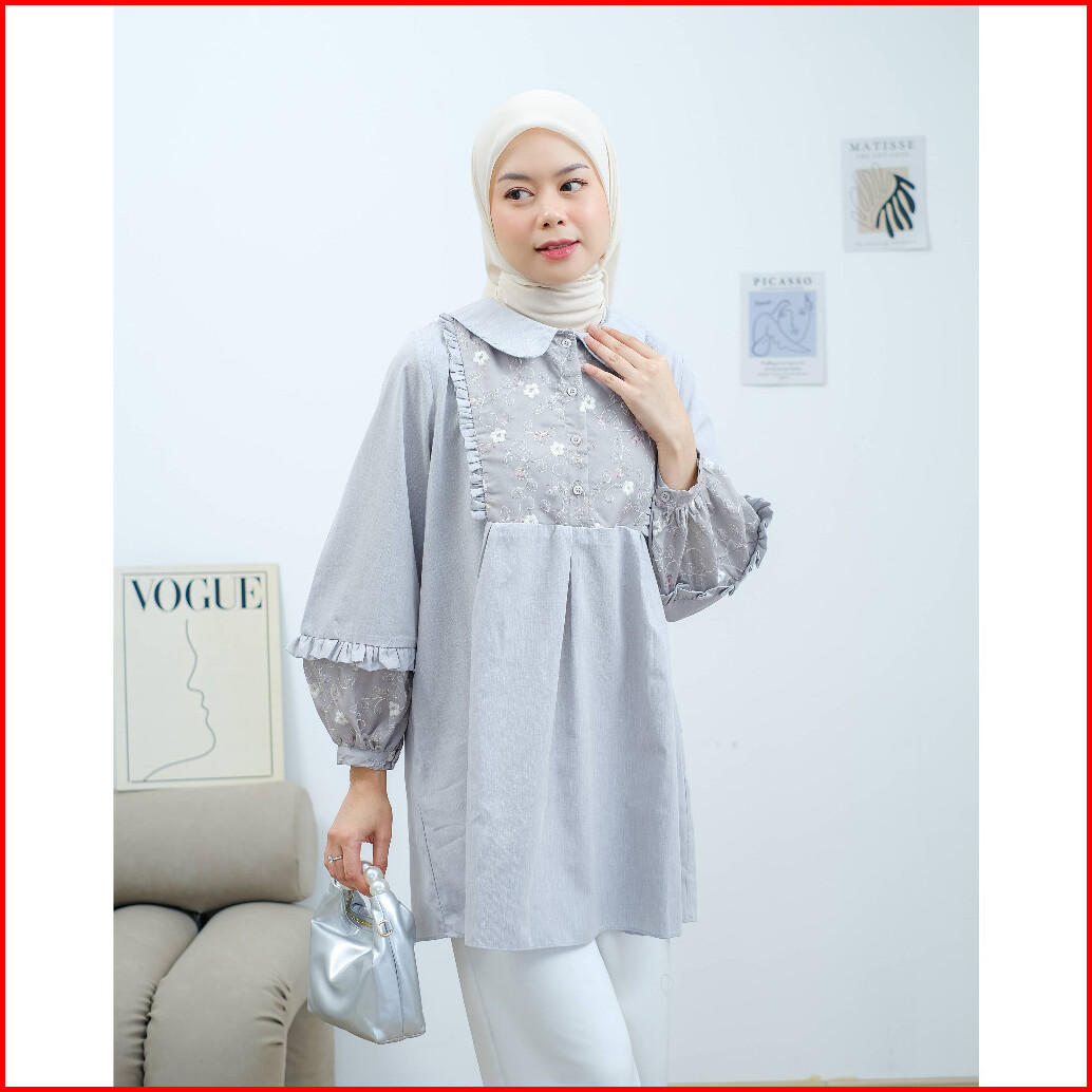 Mayoutfit Luana Tunic Atasan Tunik Kombinasi Lengan Puff