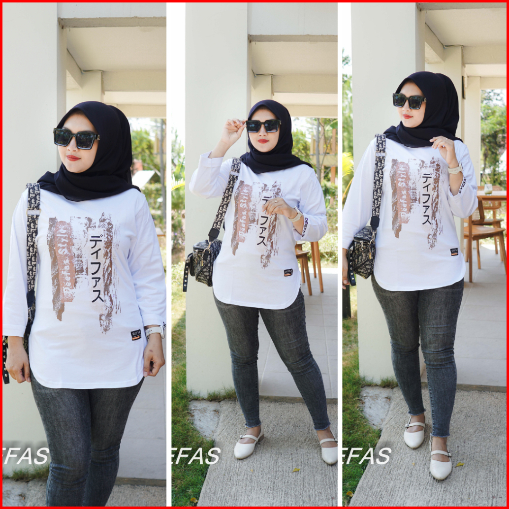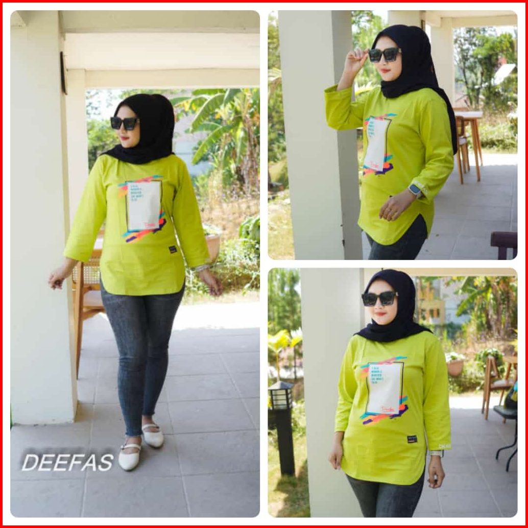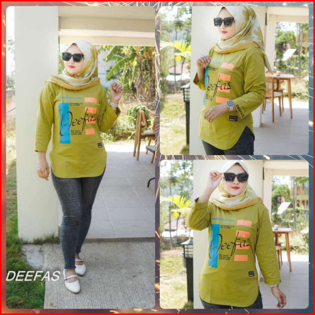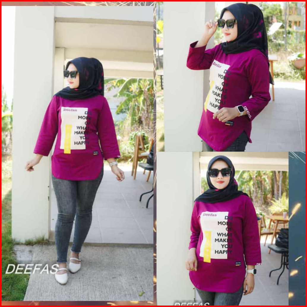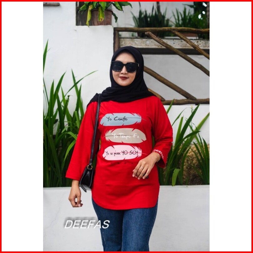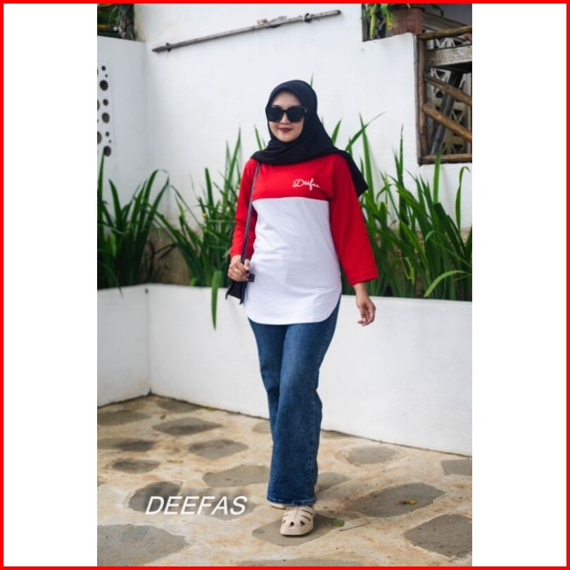 Fashion Oval Motif Atasan Baju Kaos Wanita Dengan Lengan Jahitan Stik Balik Panjang Lengan 7 8 Bahan Katun Combet20s