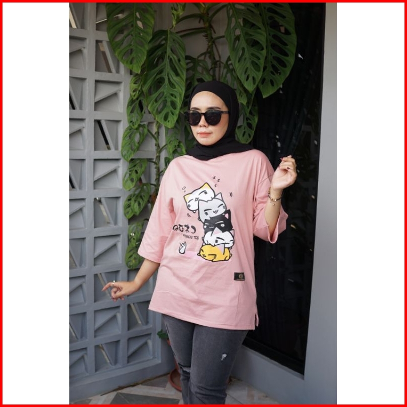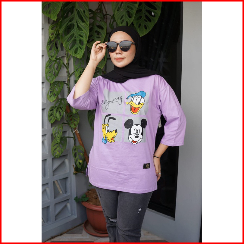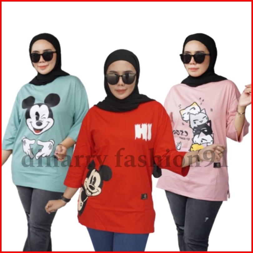 Terbaru Kaos Oversize Karakter T-shirt Oversize Basic Top Hijab Style Kaos Wanita Lengan 7 8 Zolaqu Style Kaos Dinarry F