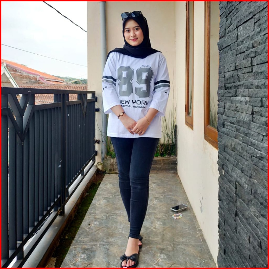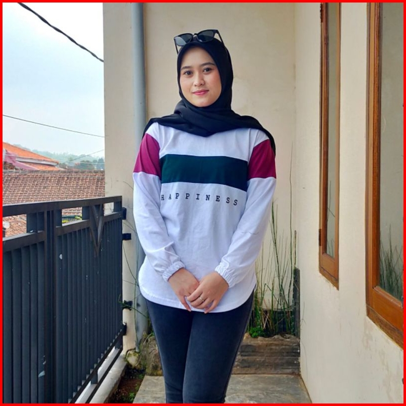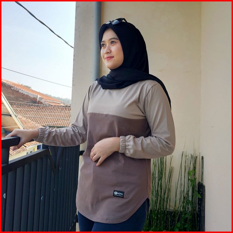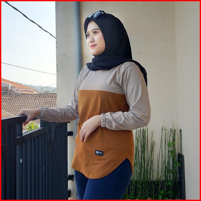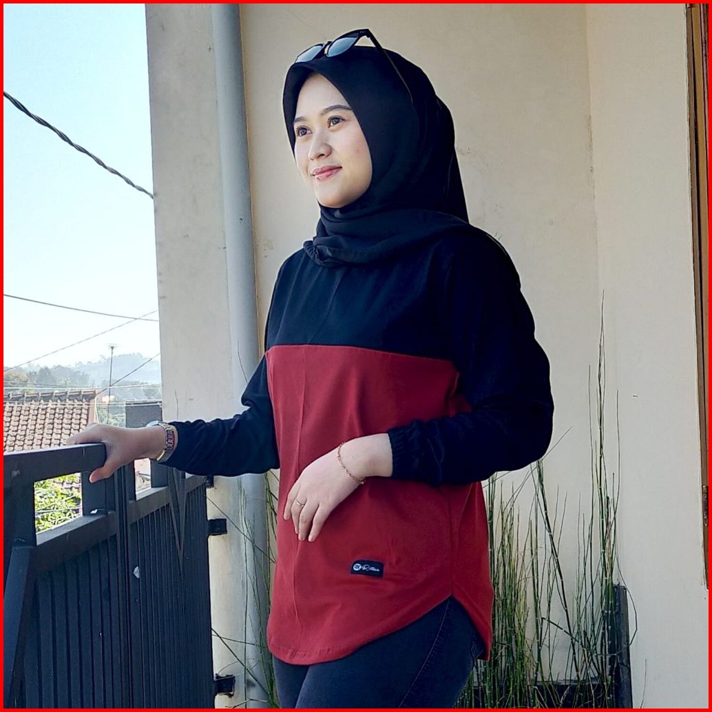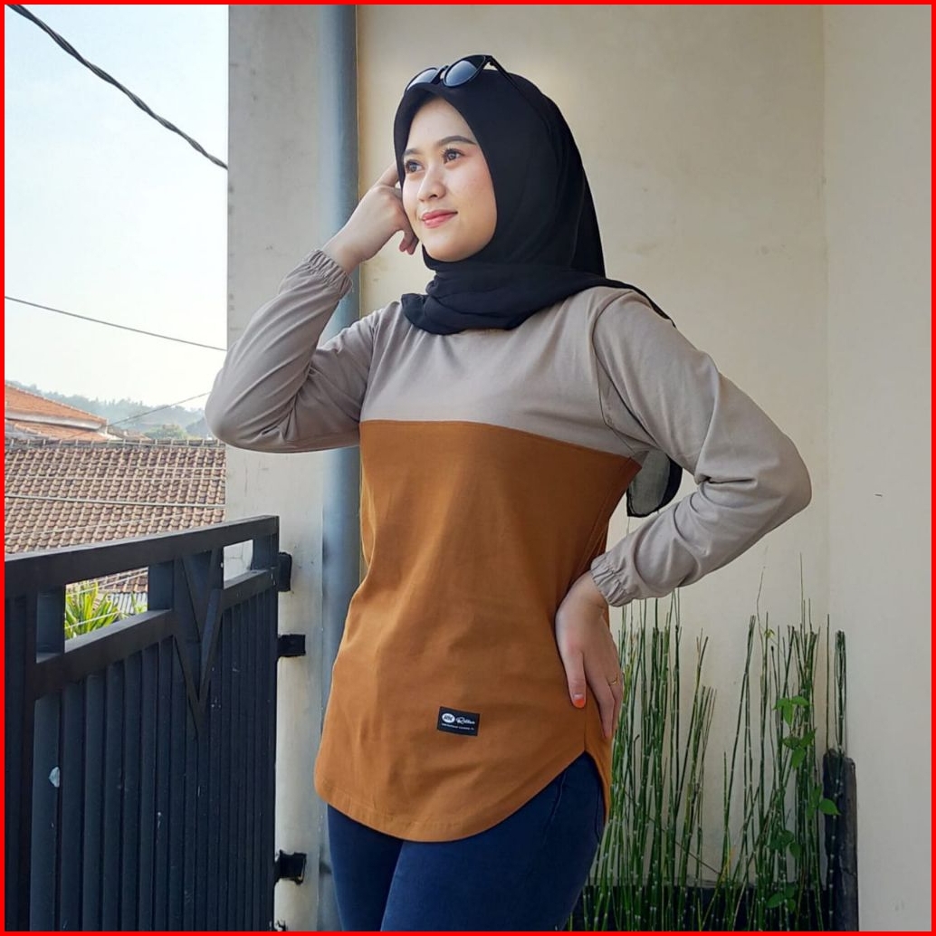 Kaos Lengan Panjang Wanita Oval Motif Warna Kombinasi Bahan Katun Kombad 20s