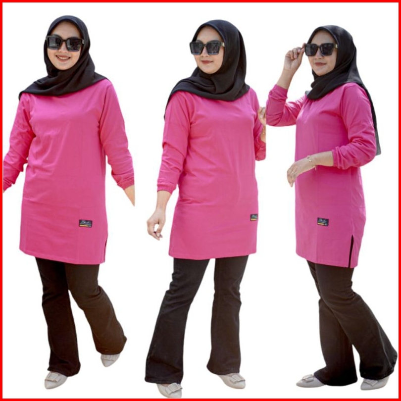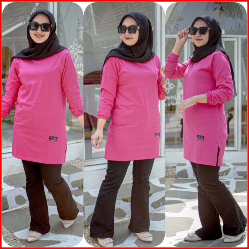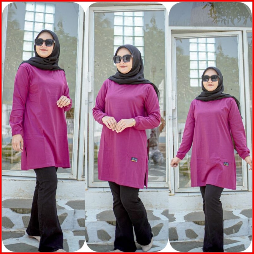 Tunik Polos 01ac Jumbo Atasan Wanita Lengan Panjang Tangan Kerut Pake Karet Bahan Katun Kombet 20s