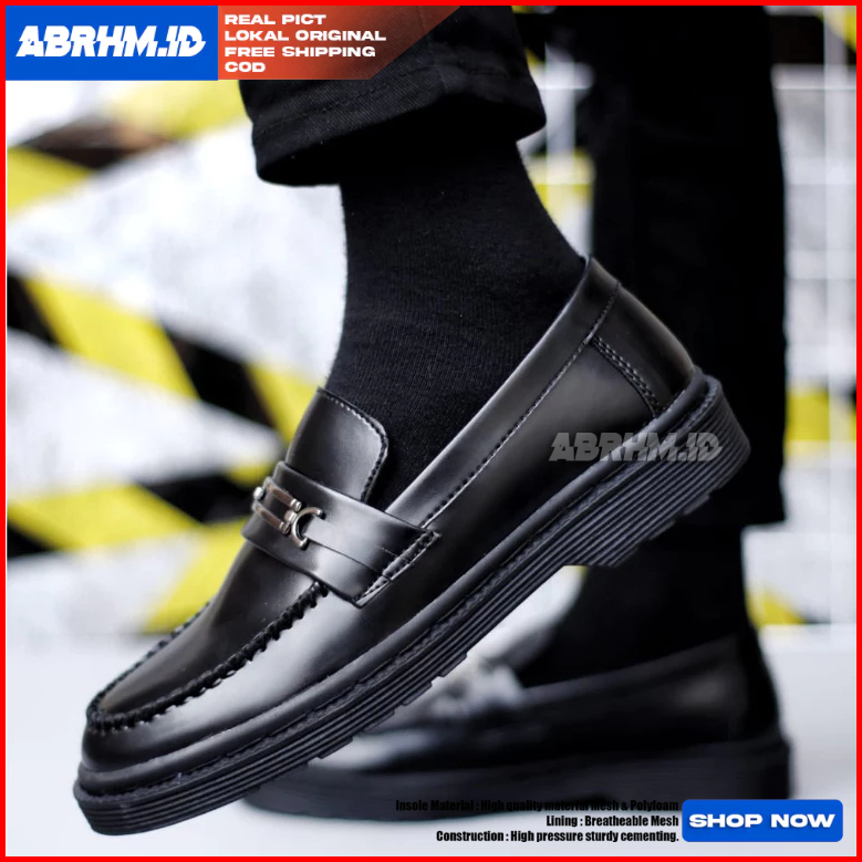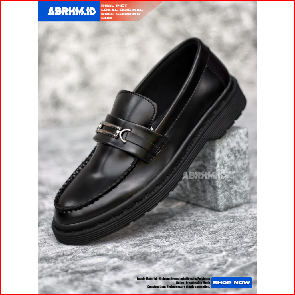 Abrhm Sepatu Loafers Docmart Formal Pantofel Hitam Pria