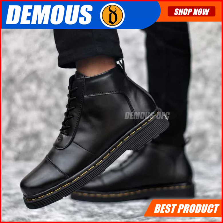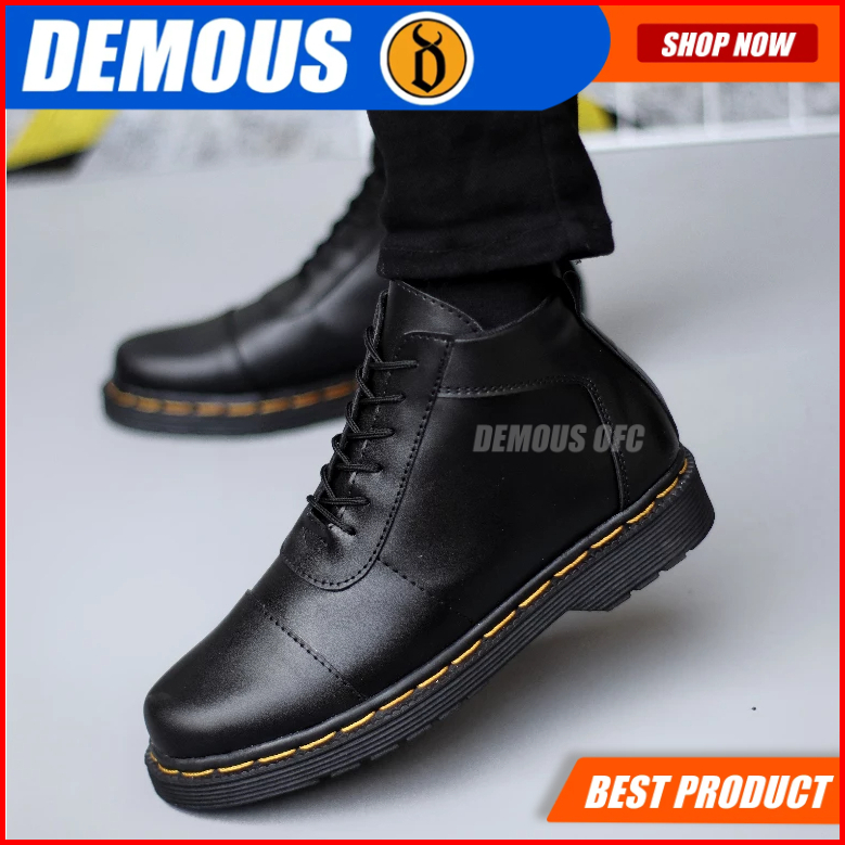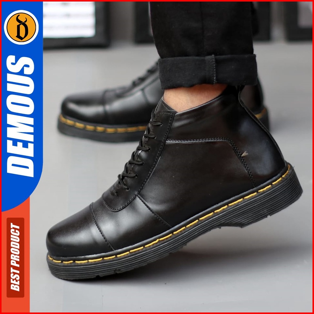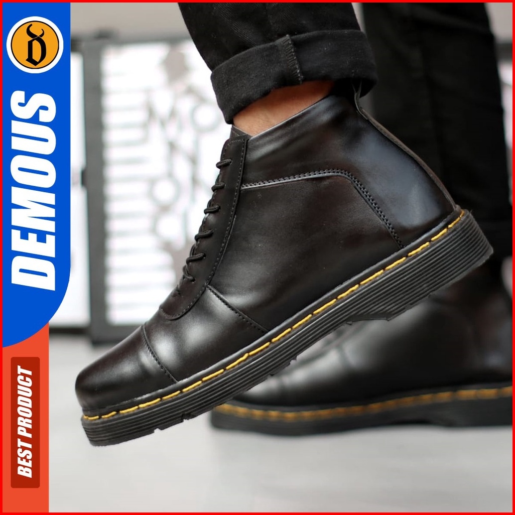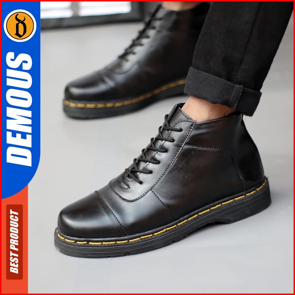 Demous Kazama - Sepatu Formal Pantofel Boots Docmart Casual Kerja Hitam Pria