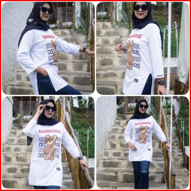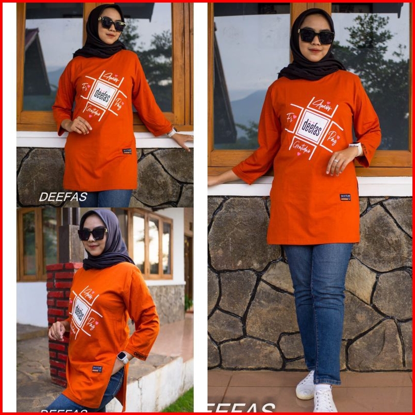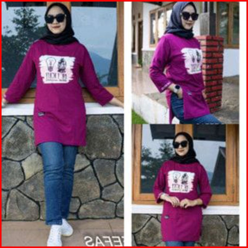 Tunik Stik Balik 06 Jumbo Kaos Wanita Lengan Panjang 7 8 Di Jahit Stik Balik Belah Pinggir Bahan Katun Kombet 20s