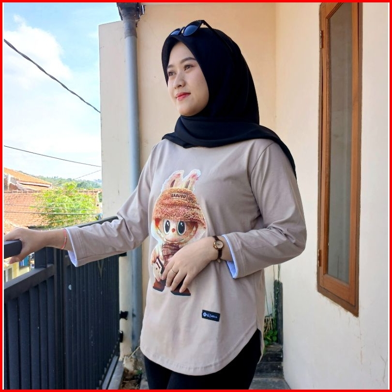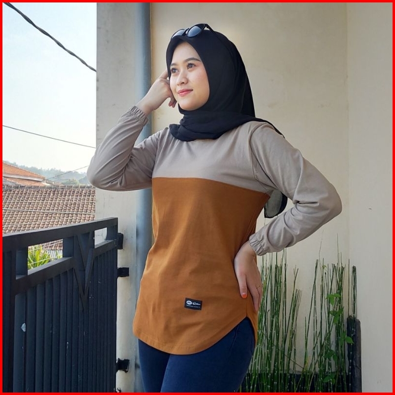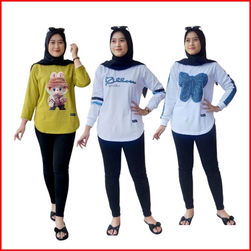Kaos Wanita Oval Atasan Wanita Lengan Panjang Motif Kekinian Bahan Adem Katun Tebal 20s