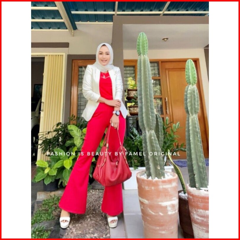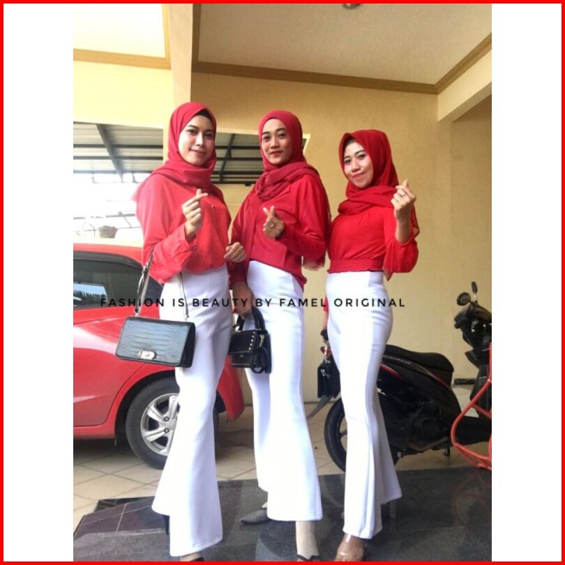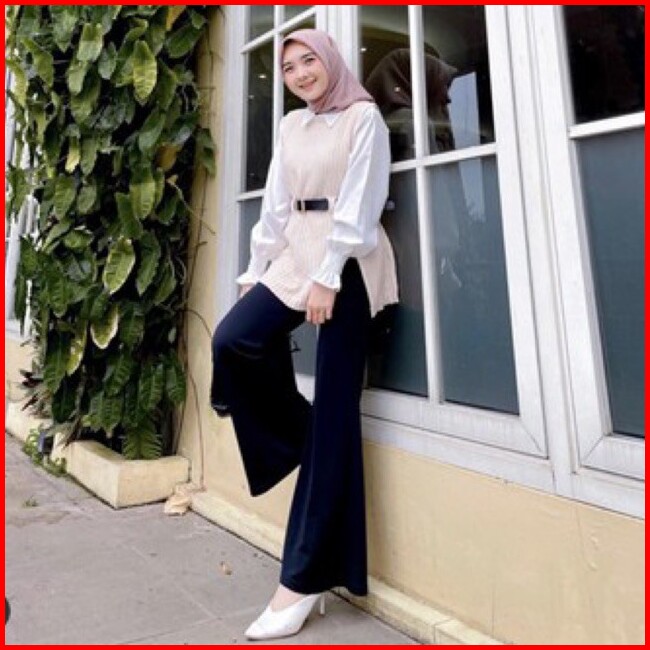 Foctk Celana Cutbray Scuba Dengan Sleting Tanpa Karet Pinggang
