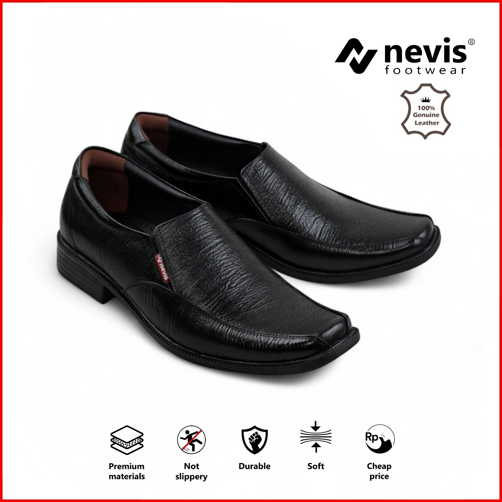 Sepatu Pantofel Pria Kulit Sapi Asli Nevis Vl 10 35 Fantofel Formal Kerja Kantor Hitam