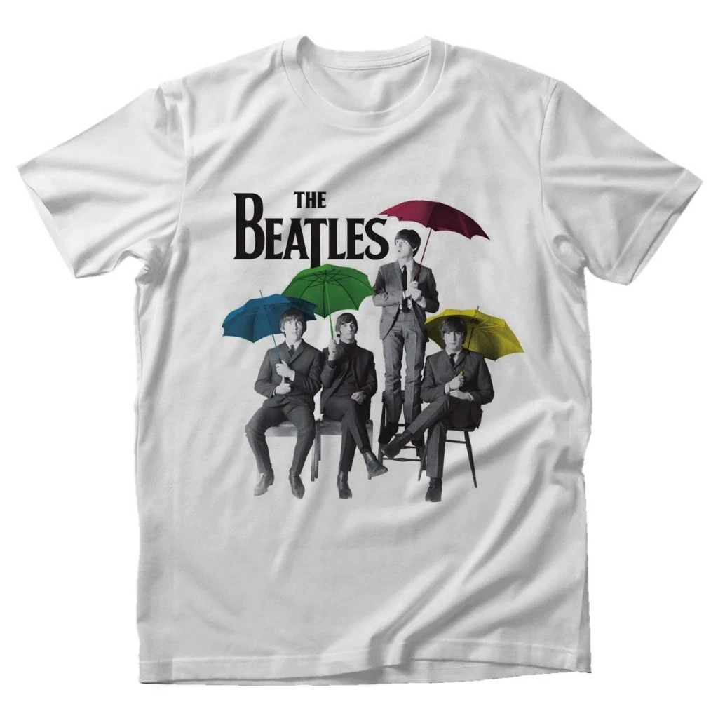 Kaos BAND MUSIK THE BEATLES UMBRELLA PUTIH 24s kaos pria/wanita free ongkir