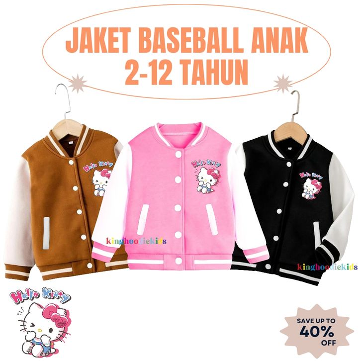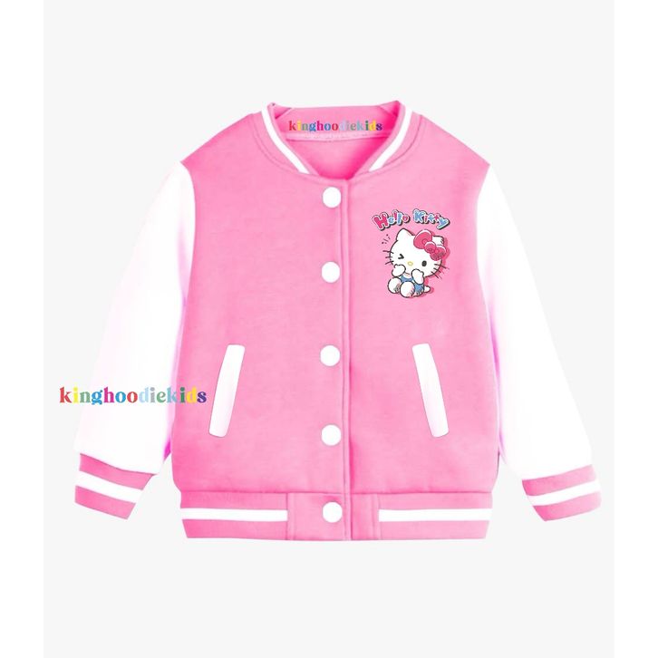 Jaket Baseball Anak Perempuan gambar Hello Kity Umur 2 3 4 5 6 7 8 9 10 11 12 Tahun Jaket Varsity Anak Cewe Cowo/Hoodie