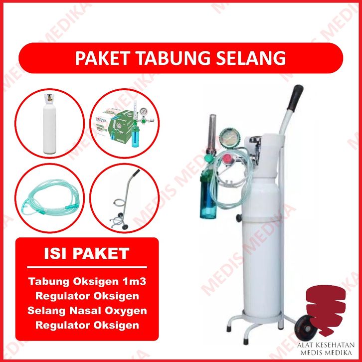 Paket Tabung Oksigen Komplit Lengkap 1M3 Regulator Trolley Trolly Tabung Alat Bantu Pernafasan Langsung Pakai Baru
