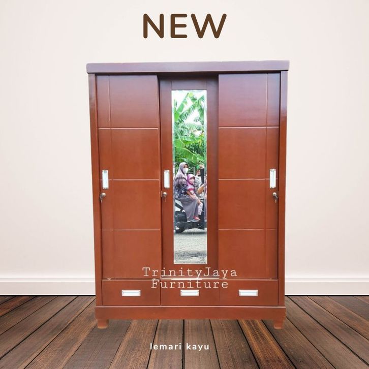 [Star] Lemari Pakaian Kayu 3 Pintu Sliding Kayu multiplek Murah Modern Minimalis Lemari Pakaian Kayu High Quality