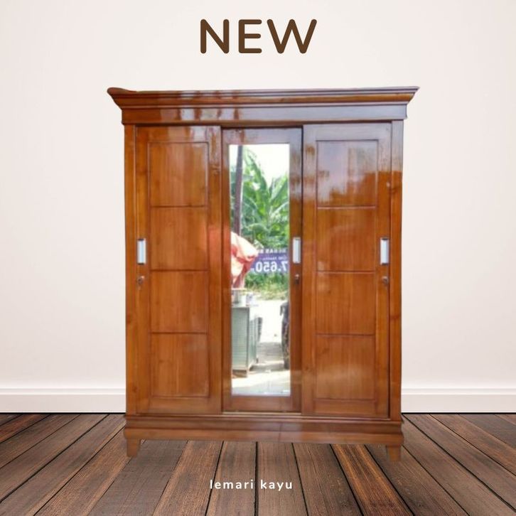 [Star] Lemari Pakaian kayu 3 Pintu Sliding Kayu Jati Lemari Pakaian Kayu Hight Quality Lemari Pakaian Kayu Jati Asli