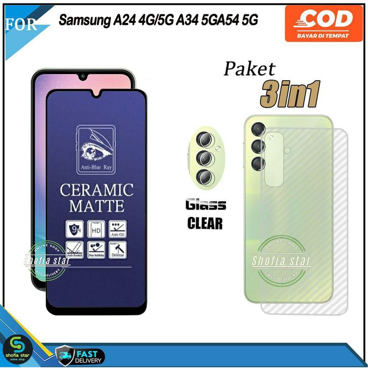 (PROMO) Paket 3in1 Tempered Glass Ceramic Spy Samsung A24 4G A34 5G A54 5G M14 5G A14 4G 5G A05s A15 4G 5G A25 5G A3