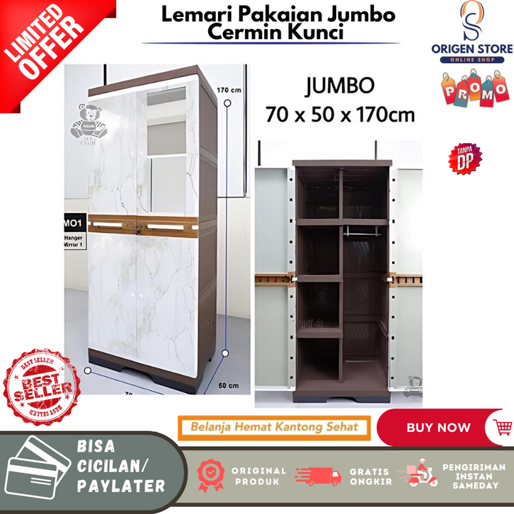 Lemari Pakaian Jumbo Cermin Kunci Lemari Baju Jumbo CLUB Mewah Kokoh