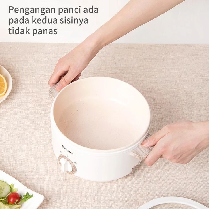 Simplus Panci Listrik Low Watt 1.5L Kukusan Serbaguna Electric Pot Lapisan Keramik Anti Lengket 2 Tingkat Daya