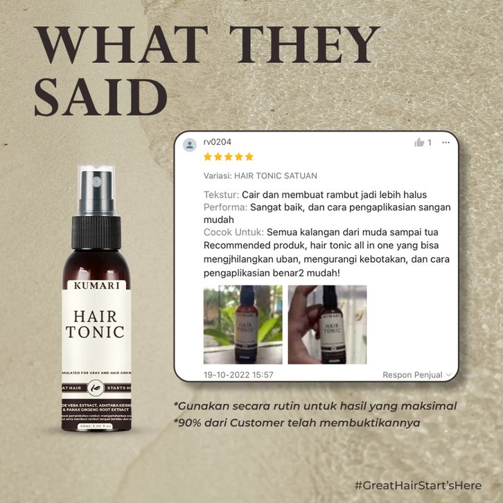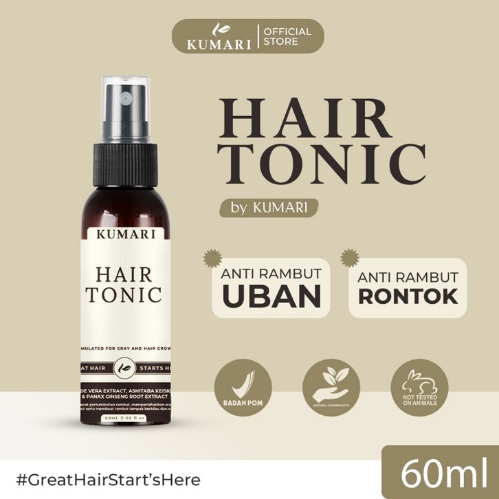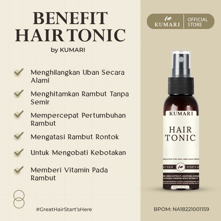 KUMARI Hair Tonic Penghilang Uban, Penumbuh Rambut Rontok, Penumbuh Rambut Atasi Kebotakan, Penghitam Rambut Tanpa Semir