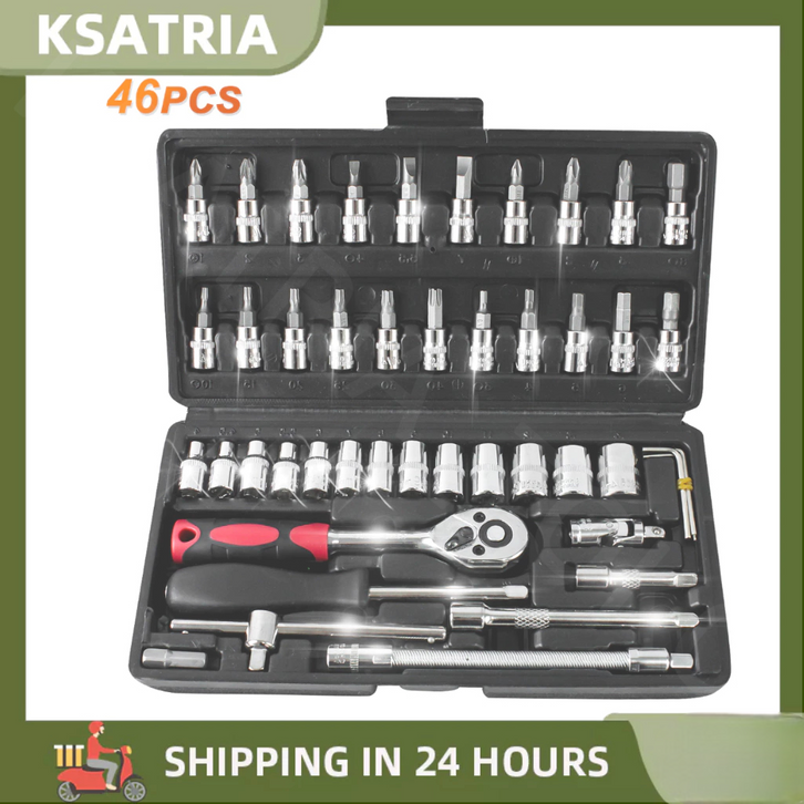SET KUNCI SOK KUNCI SHOCK 46 PCS MOBIL MOTOR LENGKAP SOCKET TOOL KIT SET PAS RING MOTOR MOBIL WRENCH PAS SOCKET SET