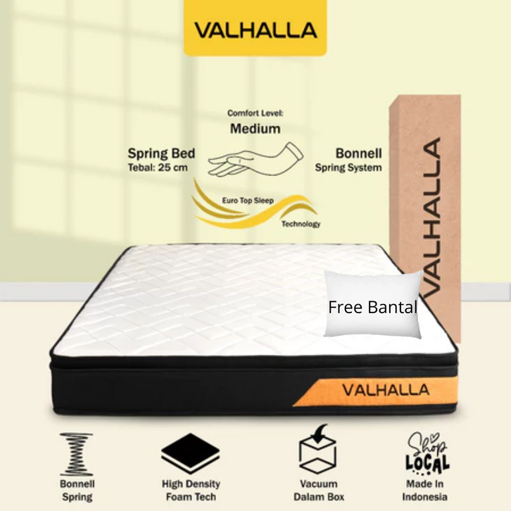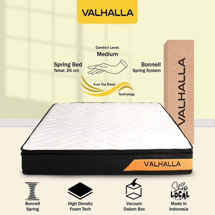 KASUR SPRING BED VALHALLA EURO TOP IN A BOX TEBAL 25CM UKURAN200X200 180X200 160X200 140X200 120X200 90X200CM BONNELL SP