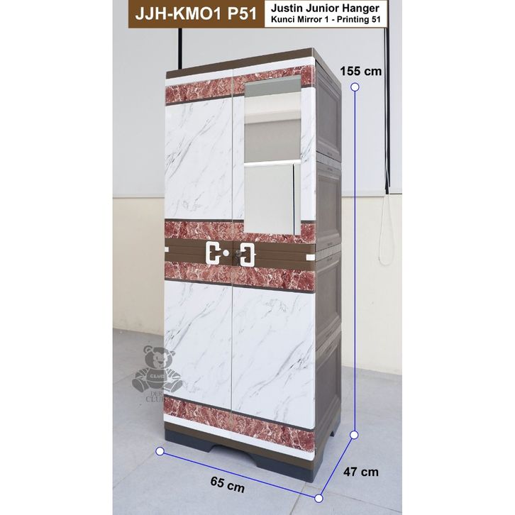 LEMARI PLASTIK CLUB JUSTIN 2 PINTU PLUS KACA RAK SERBAGUNA RAK BAJU PAKAIAN DENGAN KACA DAN KUNCI