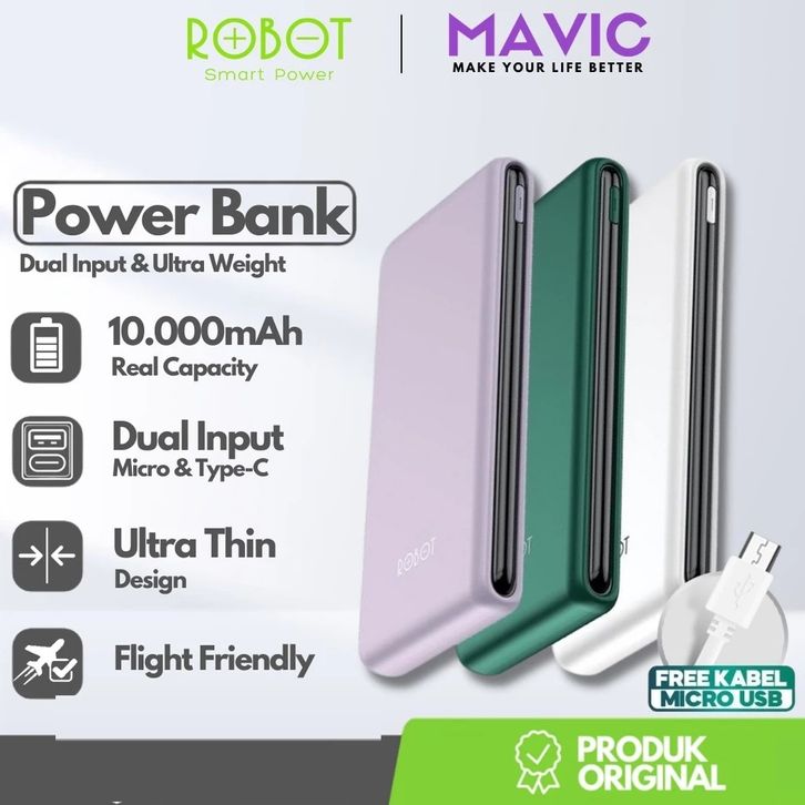 ROBOT RT180 / RT12 PowerBank 10000mAh Dual Input Port Type C & Micro USB Power Bank Real Capacity Original