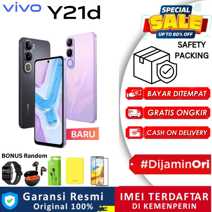 [Official Store✔] Vivo Y21d 256GB 128GB 16GB 12GB Tahan Air Ekstrem, 6500mAh Tahan 3 Hari, Tahan Banting Ekstrem