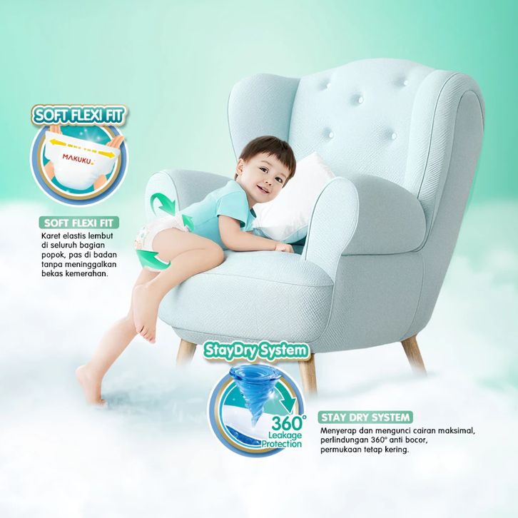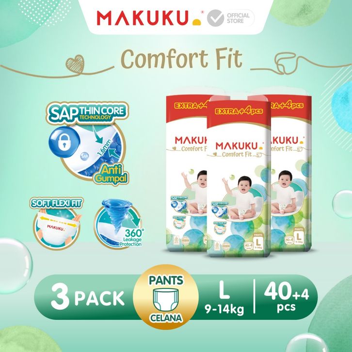 Paket 3 Ball MAKUKU DIAPERS COMFORT FIT JUMBO BIG PACK M42+4 L40+4 XL38+4 POPOK BAYI X 2 PACKS