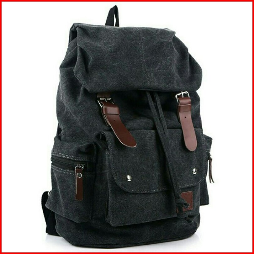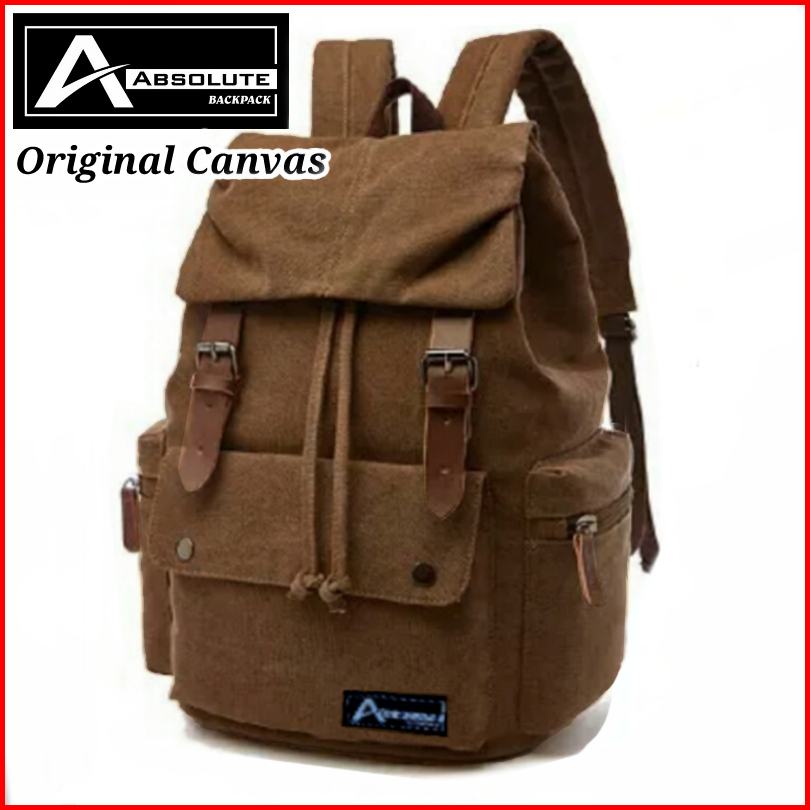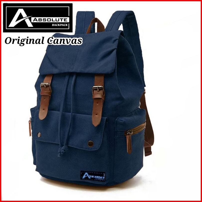 Absolute Tas Ransel Hitam Laptop Bahan Kanvas Pria Wanita Kerja Kuliah Sekolah Lokal Bandung