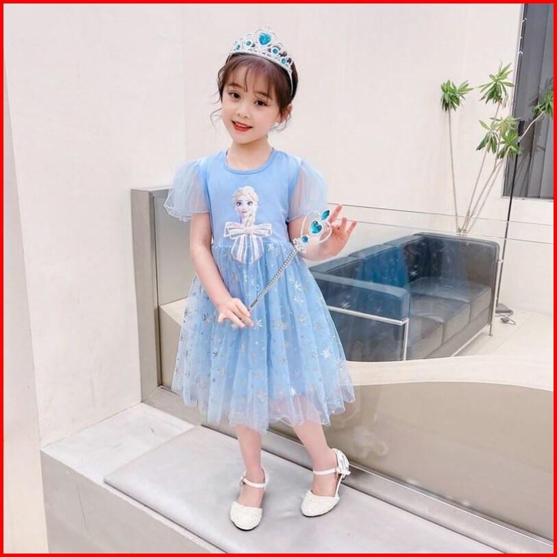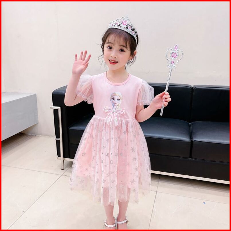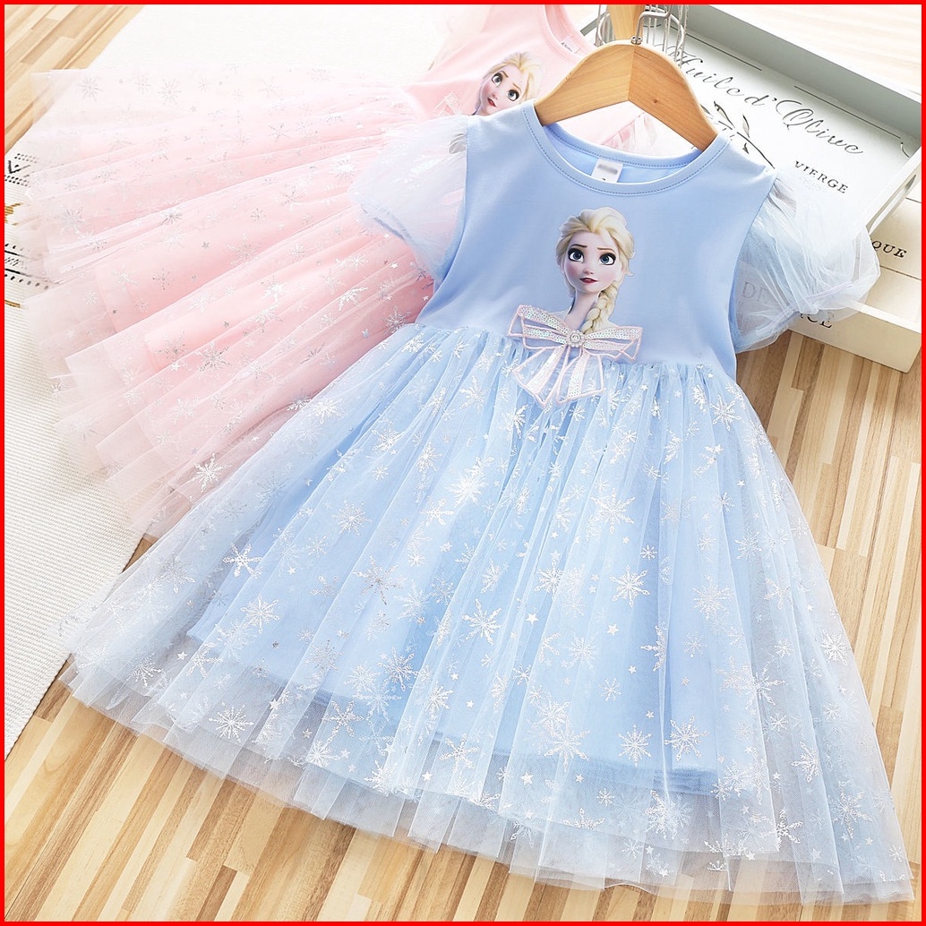 Hoobaby 1-9 Tahun Dress Frozen Pita Anak Perempuan Katun Kids Baju Princess