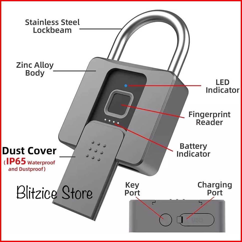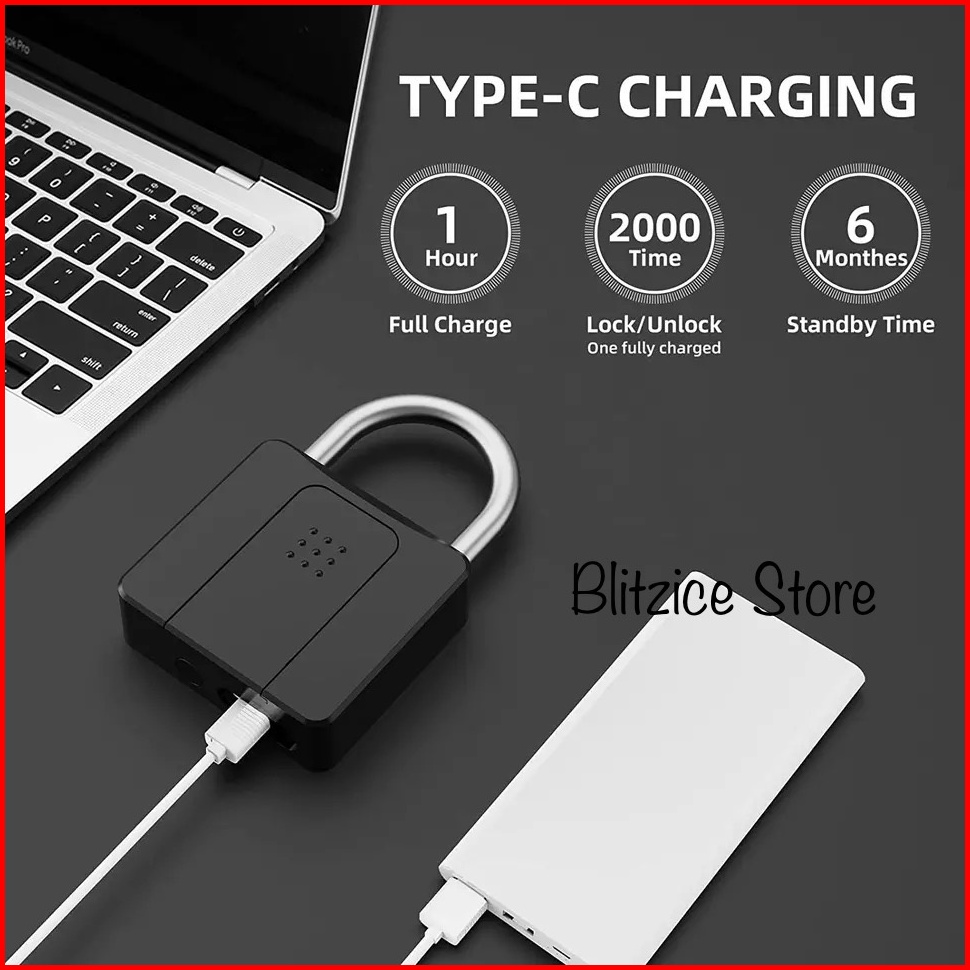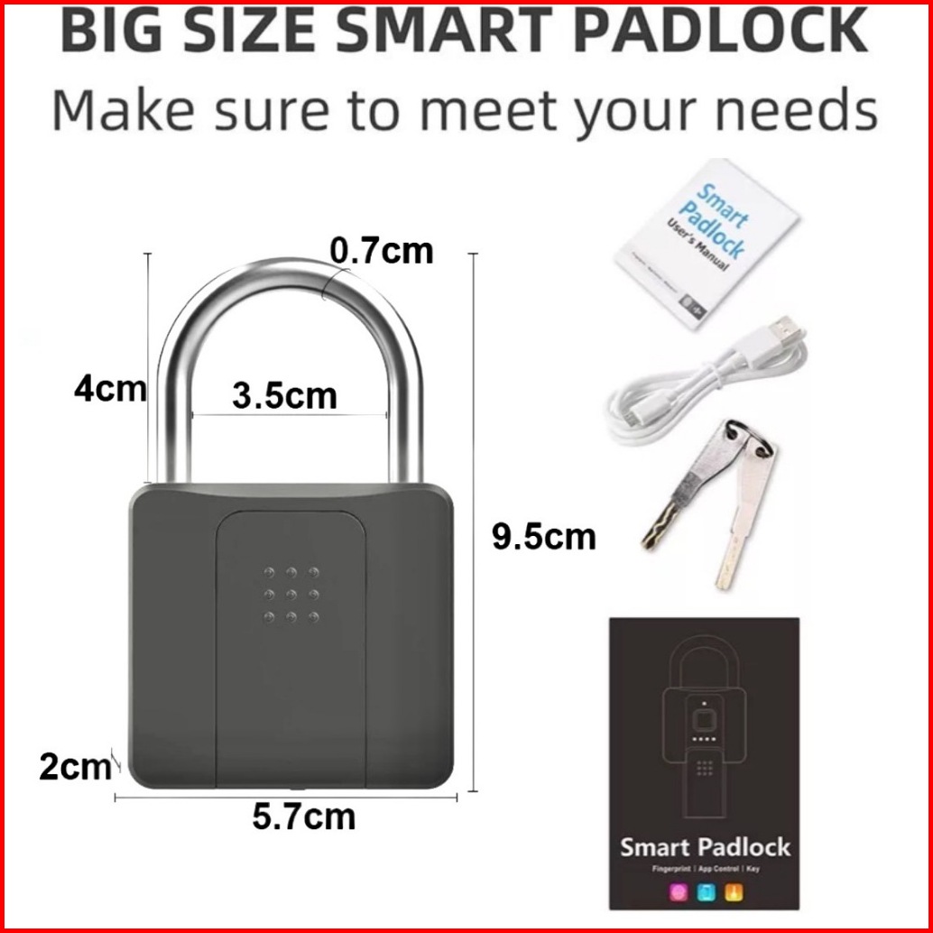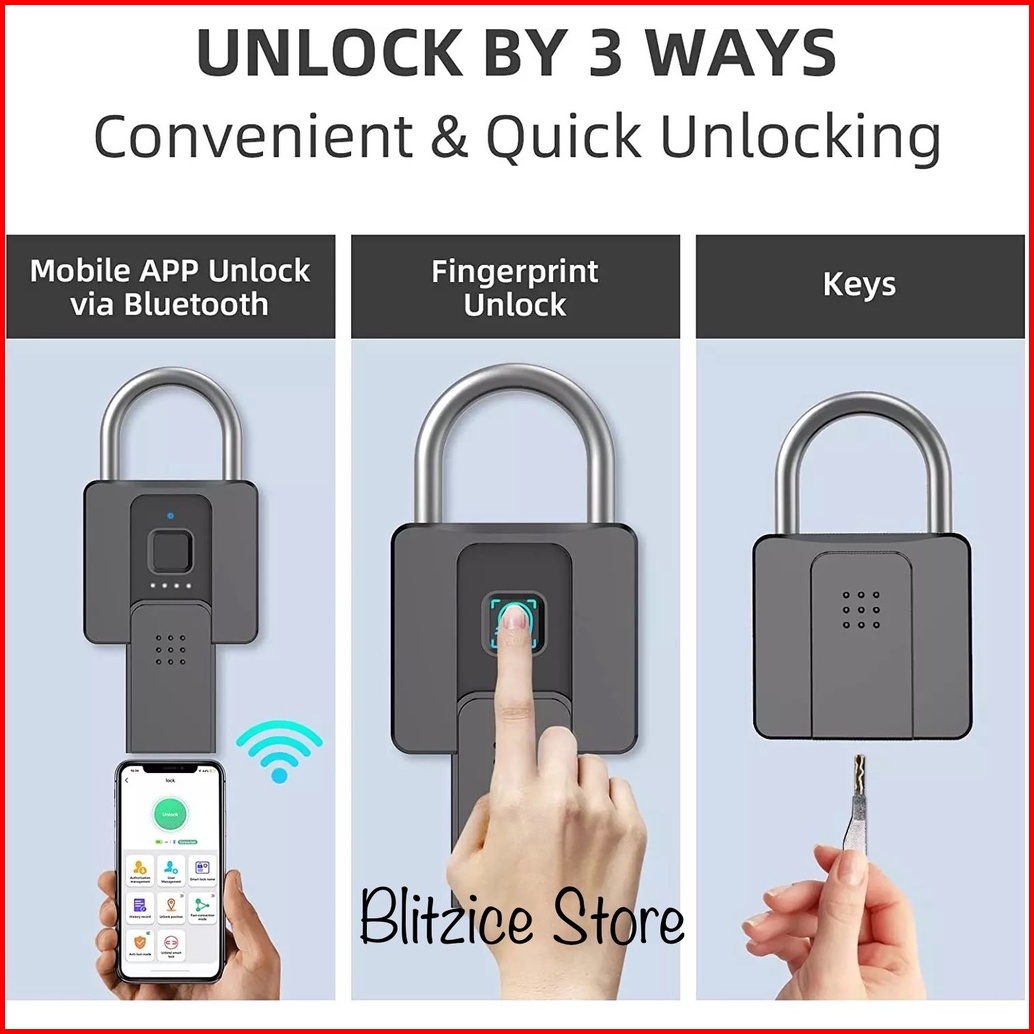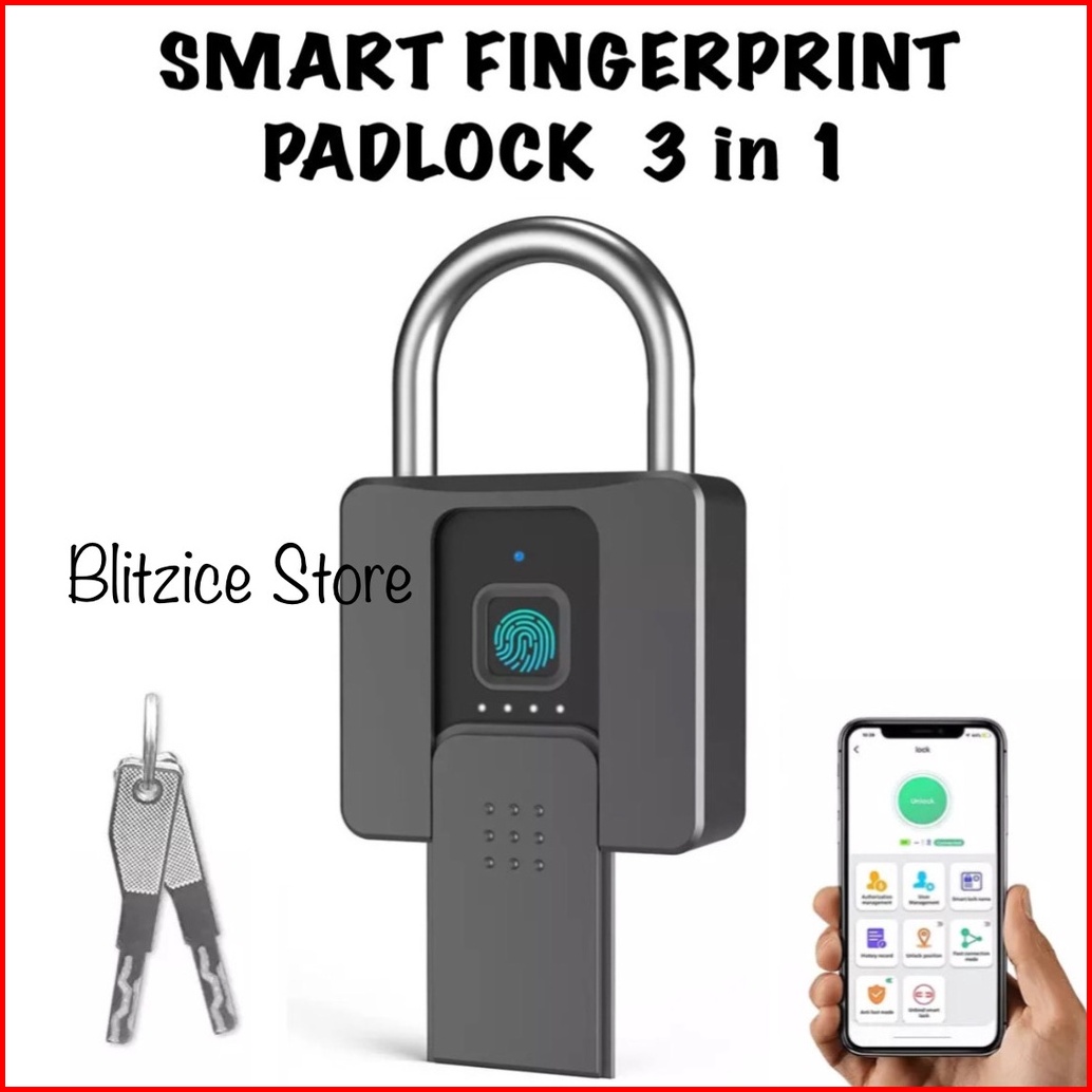Fingerprint Padlock Key 3 In 1 Gembok Sidik Jari Kunci Smart Lock