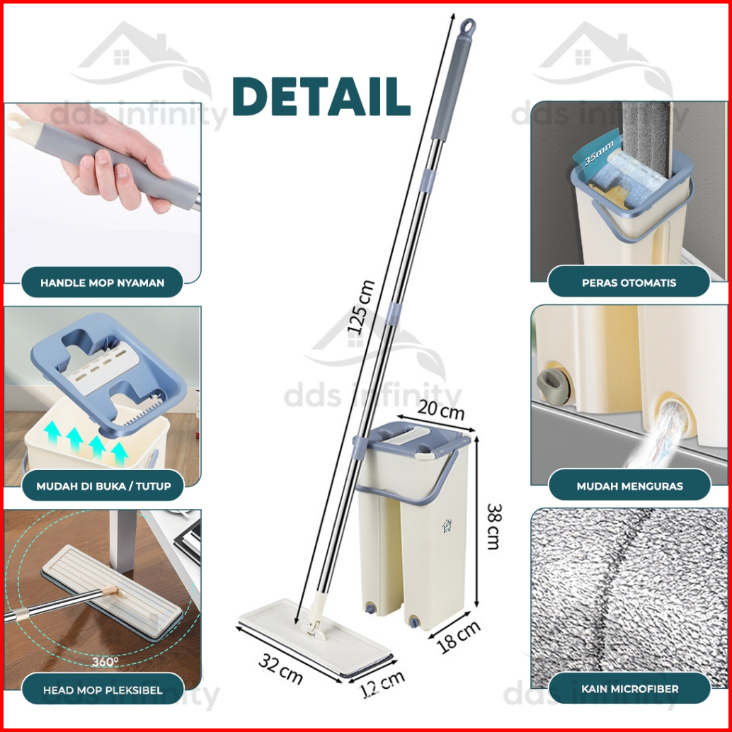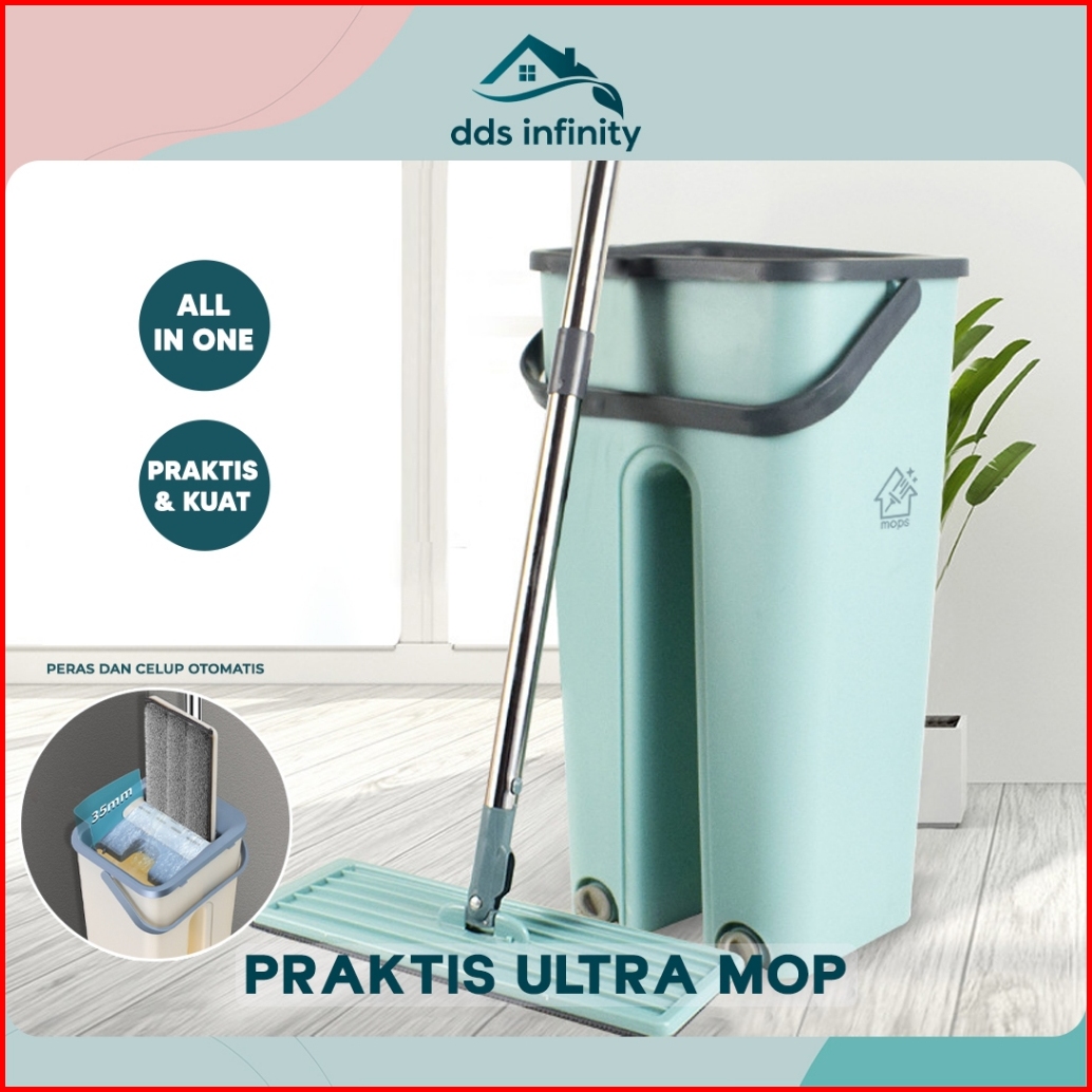 Alat Pel Lantai Praktis Ultra Mop Flat Pengepel Otomatis 360 Derajat Alat Pel Dengan Ember