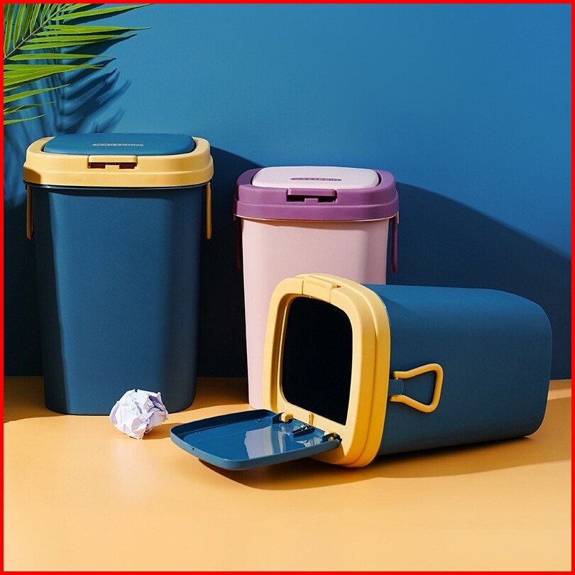 Phg - Tempat Sampah Kamar Kotak Sampah Tertutup Tong Sampah Dapur Kamar Keranjang Sampah Plastik Serbaguna