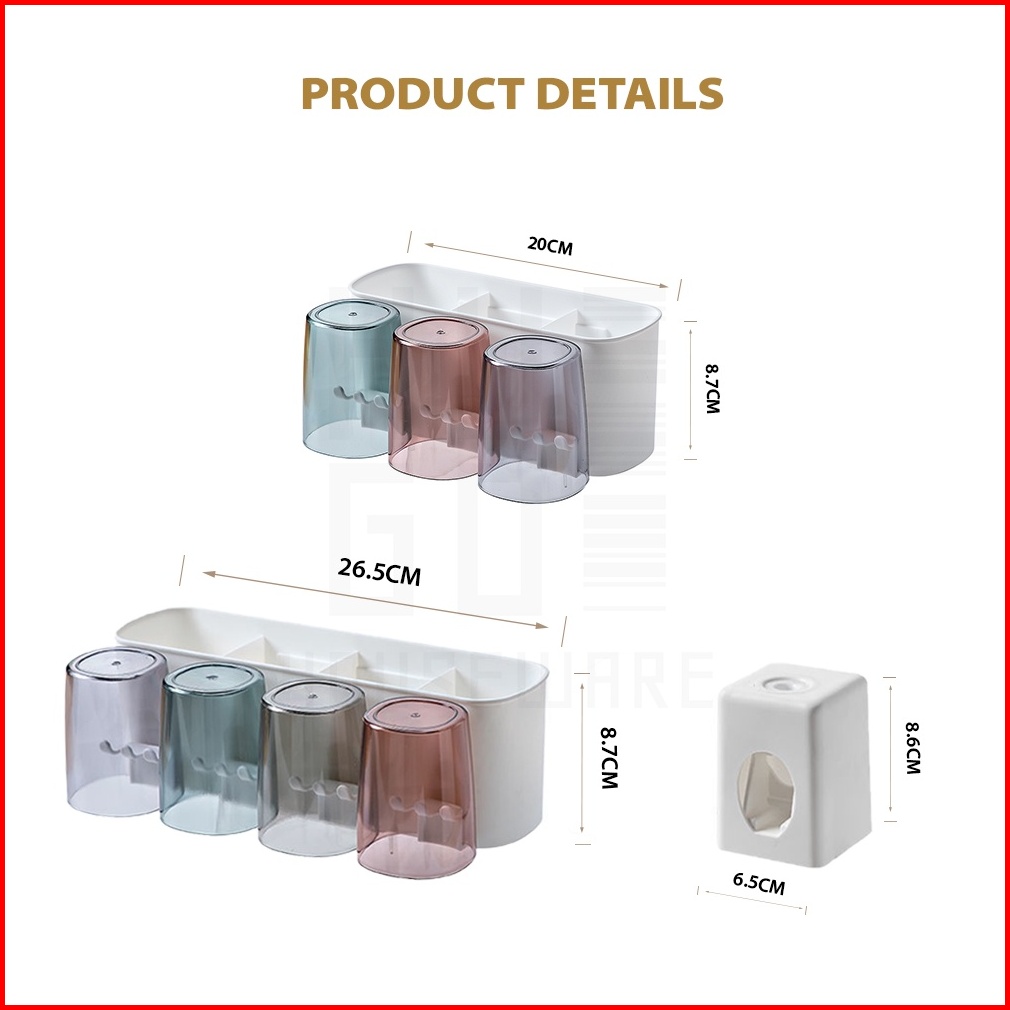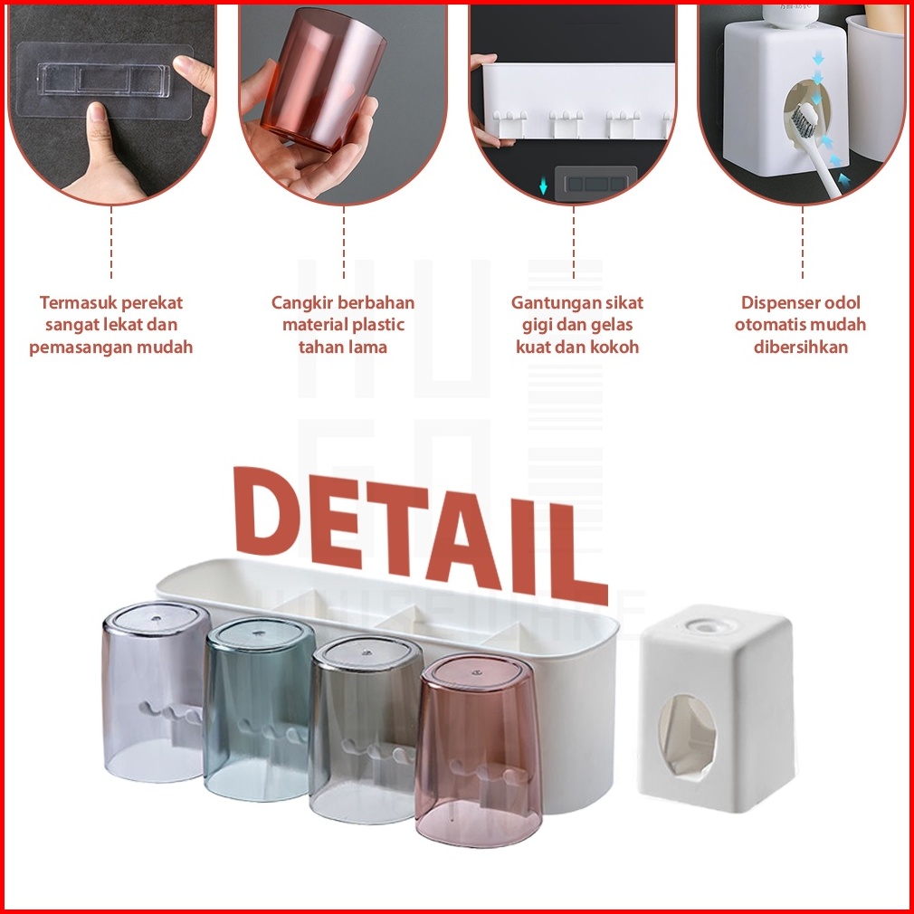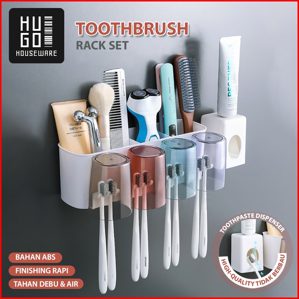 Hugo Rak Sikat Gigi Tempat Sikat Gigi Dispenser Odol Rak Gantung Kamar Mandi Tempel