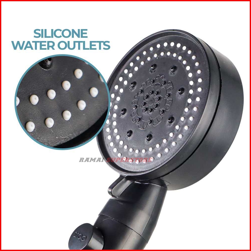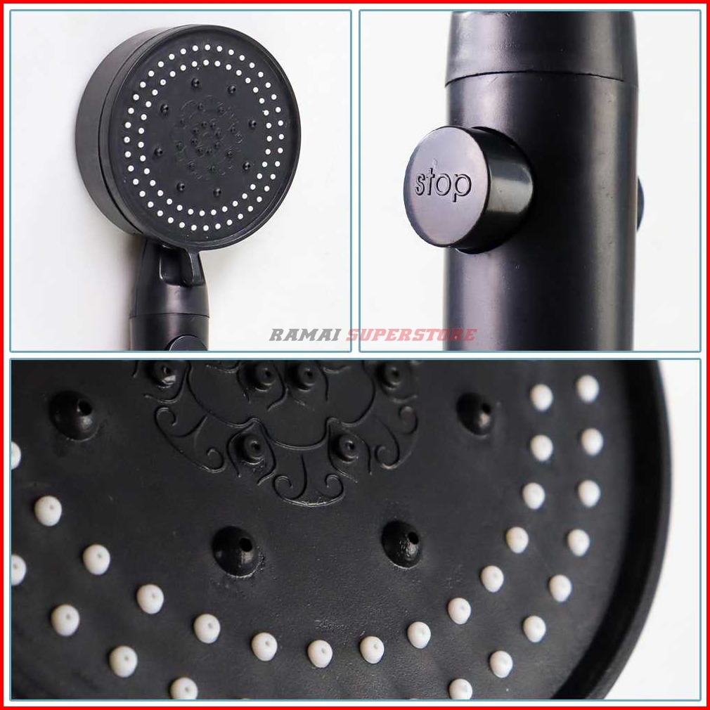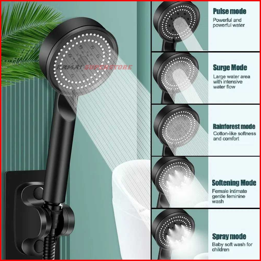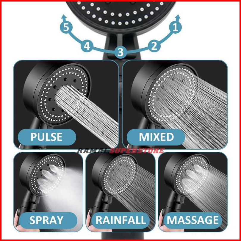 Kepala Shower Mandi Hitam Dan Silver Minimalis 5 Mode