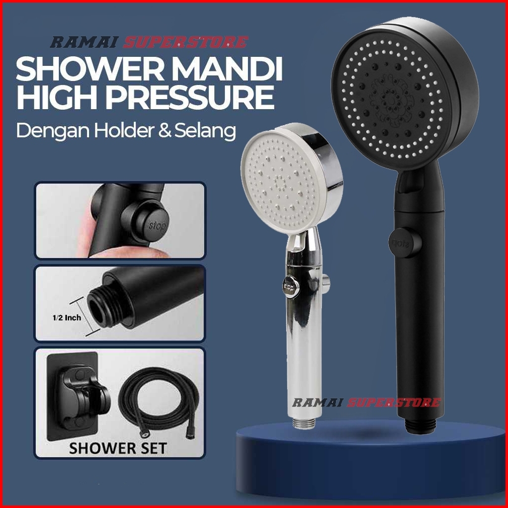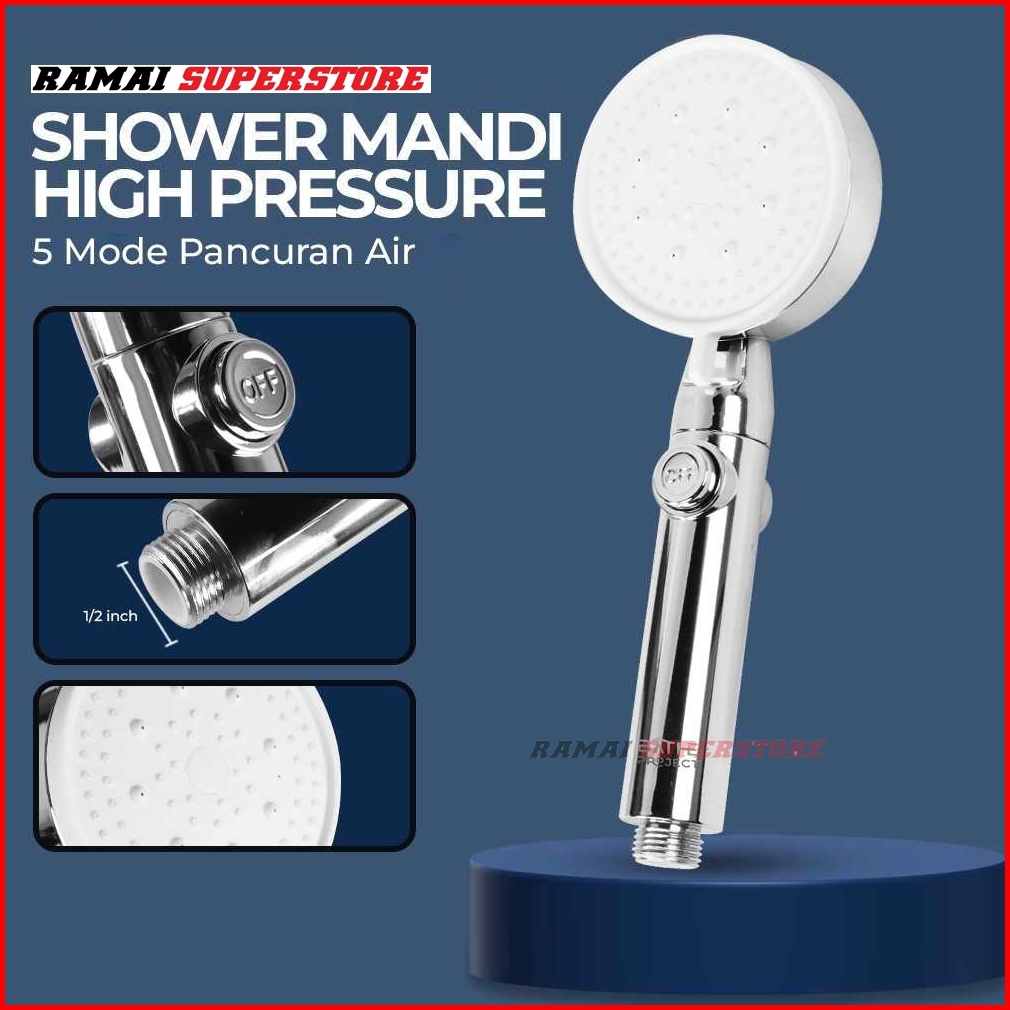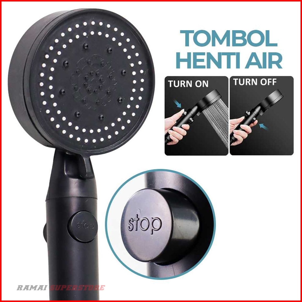 Kepala Shower Mandi Hitam Dan Silver Minimalis 5 Mode