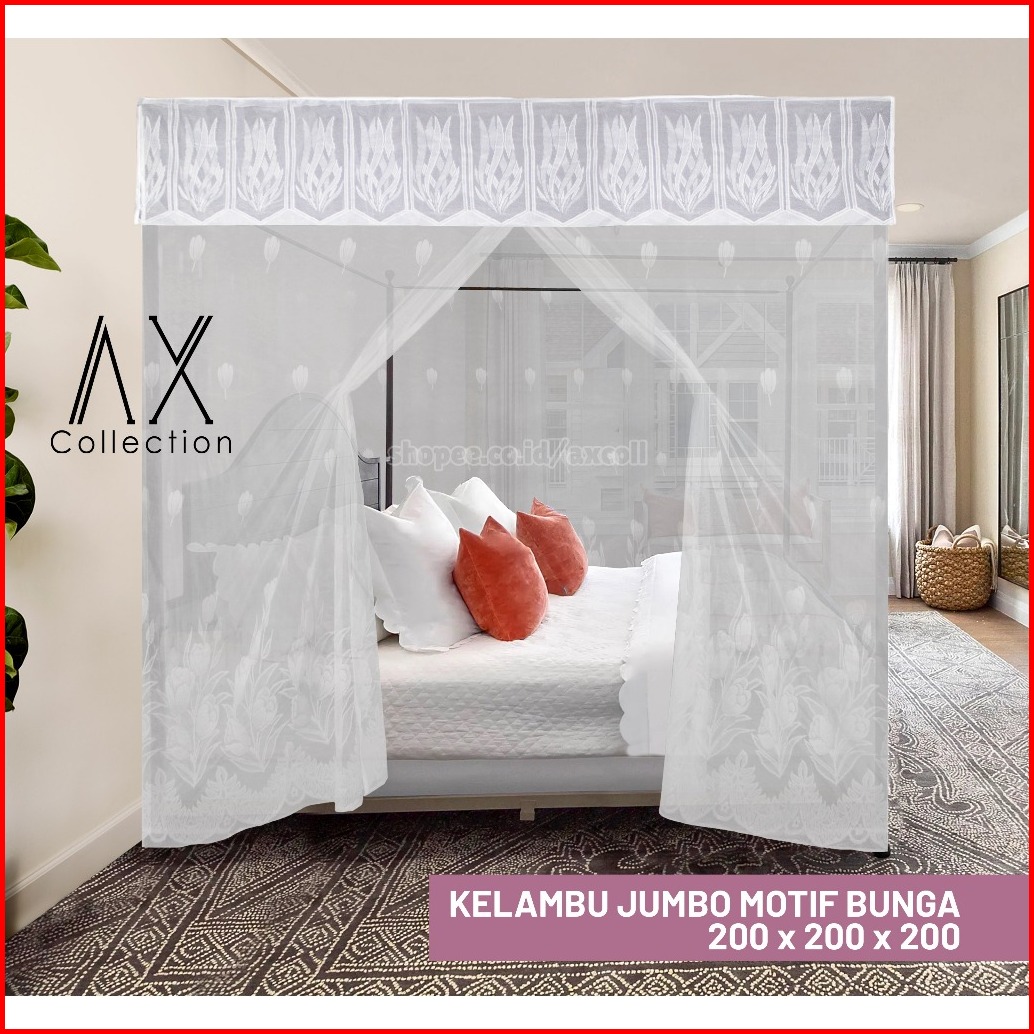 Kelambu Kotak Persegi Empat Jumbo Poni Putih 200x200 Axcoll