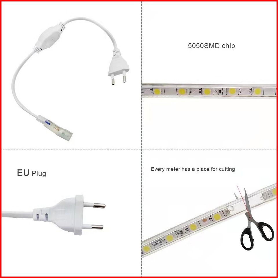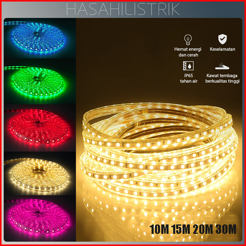 Paket Lampu Led Strip Selang 5050 10m 20m 30 Meter Lampu Strip Socket Tutup 5050 Lampu Hias Cafe Led Strip