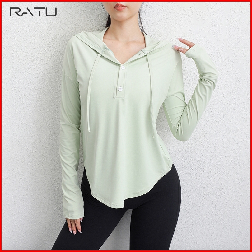 Ratu Baju Ukuran Longgar Besar Hoodie Olahraga Wanita Pakaian Atasan Olahraga Lengan Panjang Pakaian Yoga Anti Uv Upf 50