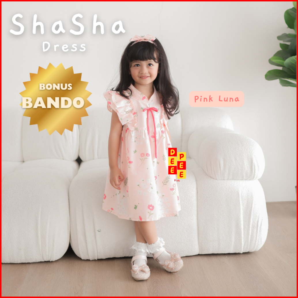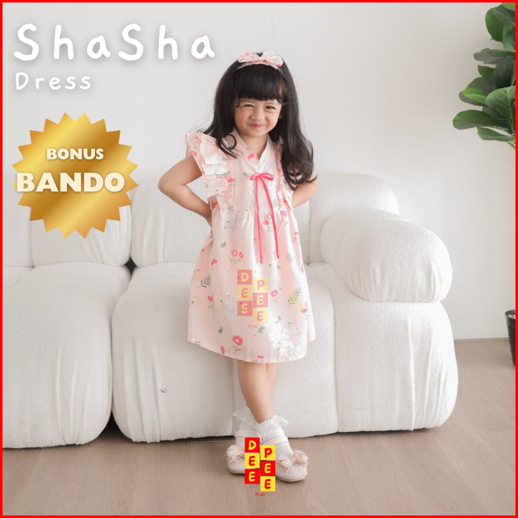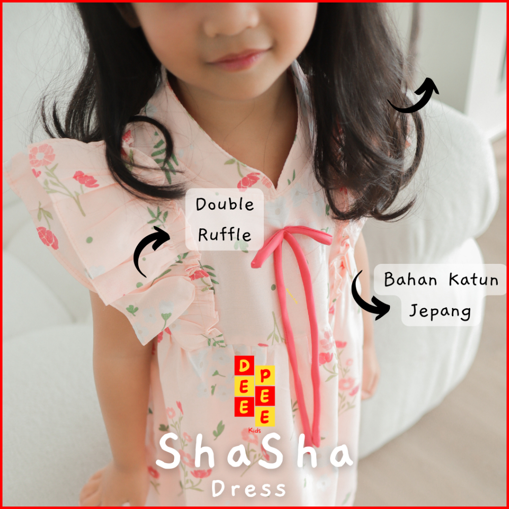 Shasha Dress Anak Perempuan Umur 1 2 3 4 5 6 7 8 9 10 Tahun Bahan Katun Jepang Warna Pink Putih Peach Green Hijau