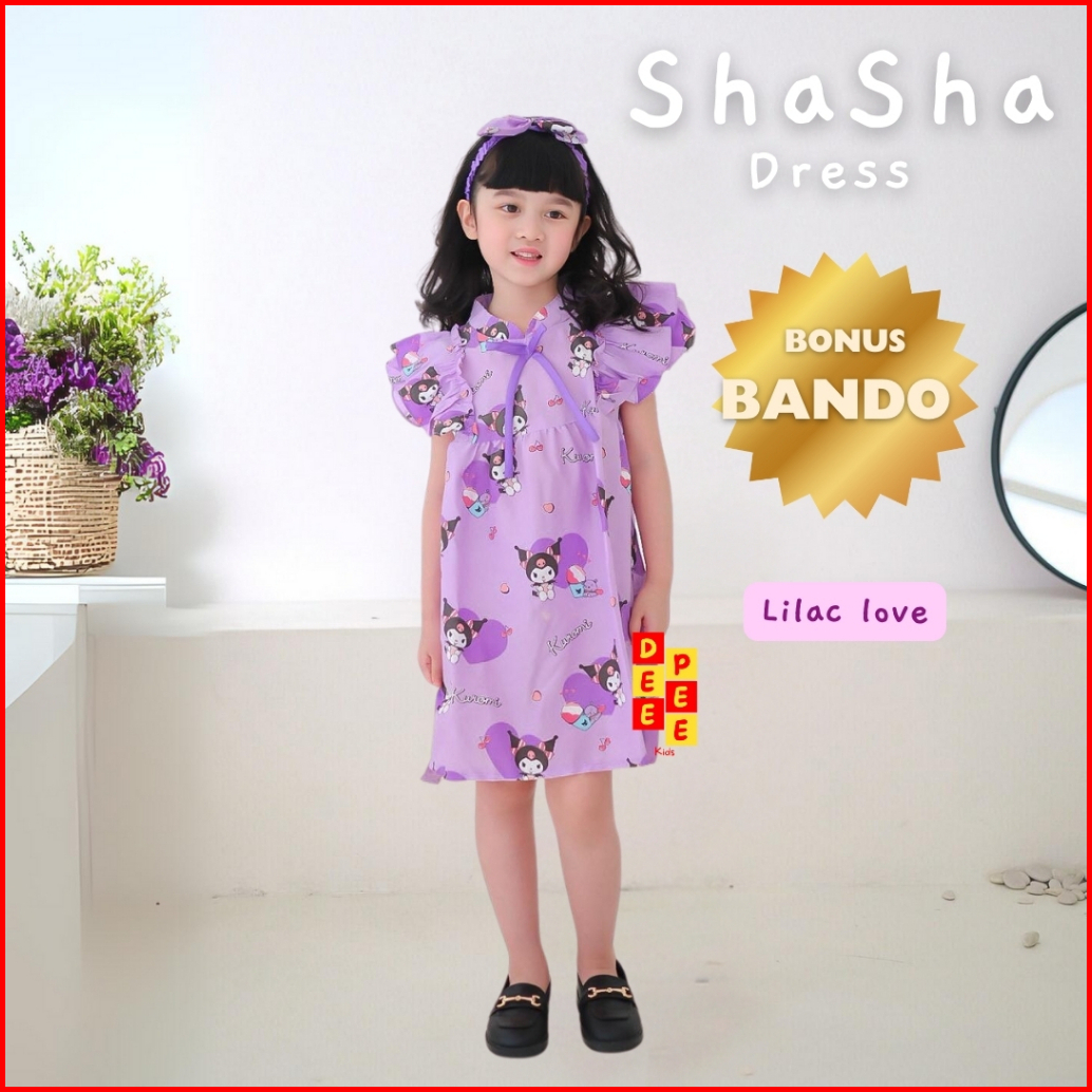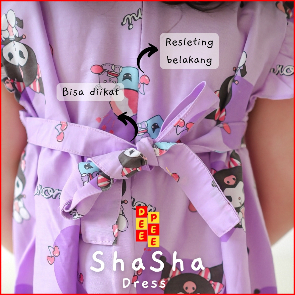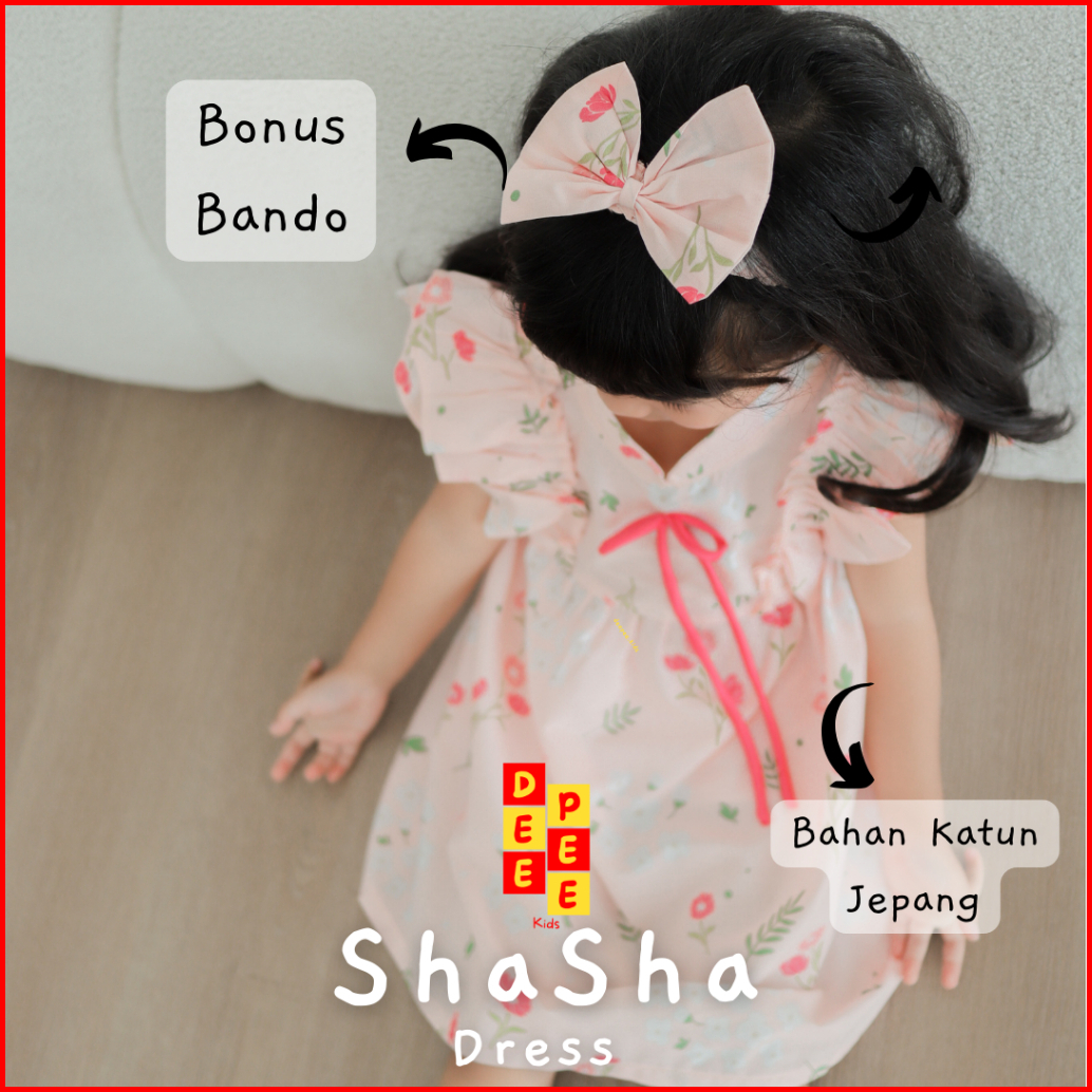 Shasha Dress Anak Perempuan Umur 1 2 3 4 5 6 7 8 9 10 Tahun Bahan Katun Jepang Warna Pink Putih Peach Green Hijau